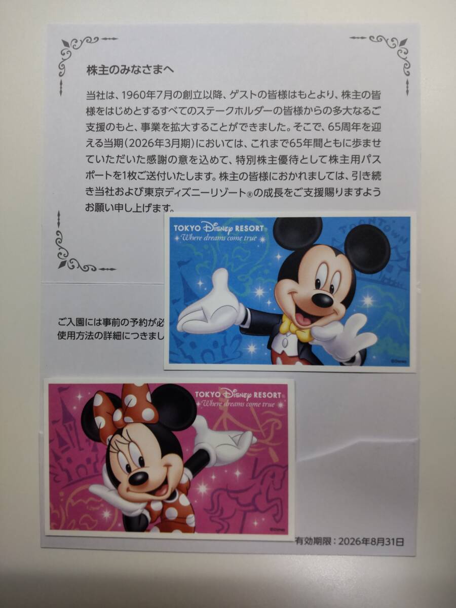 【最新】オリエンタルランド 特別株主優待 東京ディズニーリゾート 株主用パスポート 2枚 送料無料 有効期限:2026年8月31日