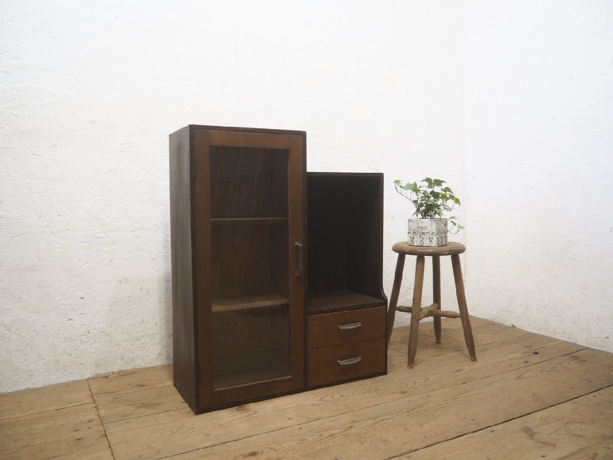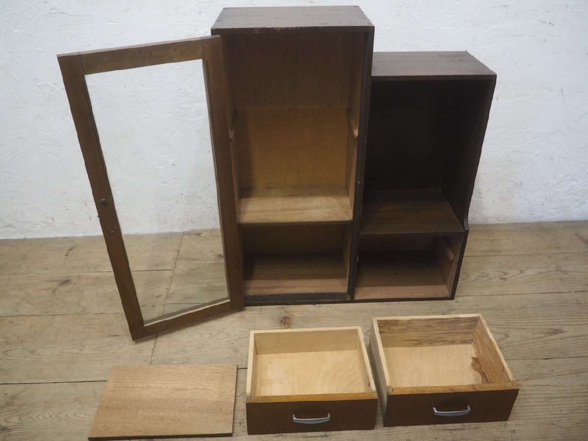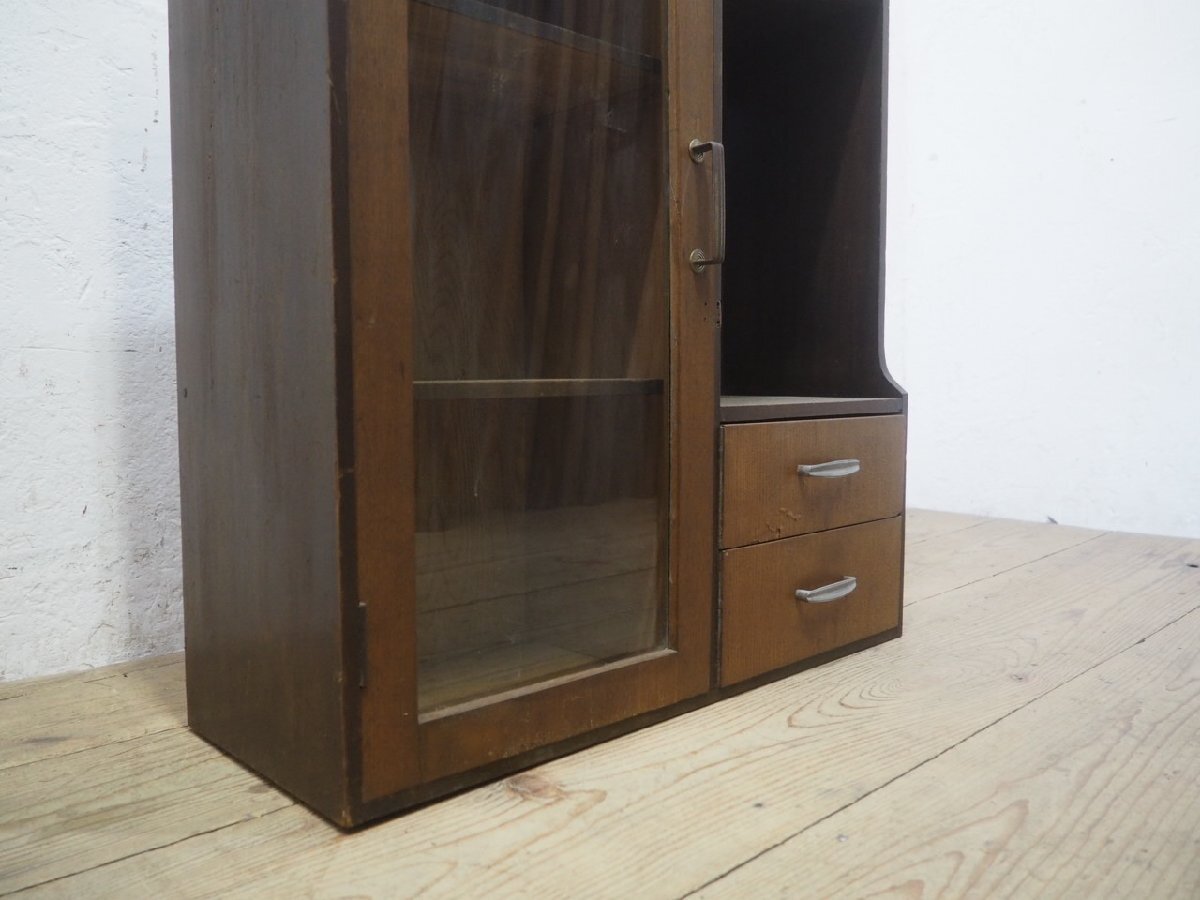タP0260◆H81cm×W67cm◆ヴィンテージ◆レトロモダンな古い木製ガラスケース◆飾り棚 収納棚 食器棚 本棚 本箱 キャビネット 古家具L笹4