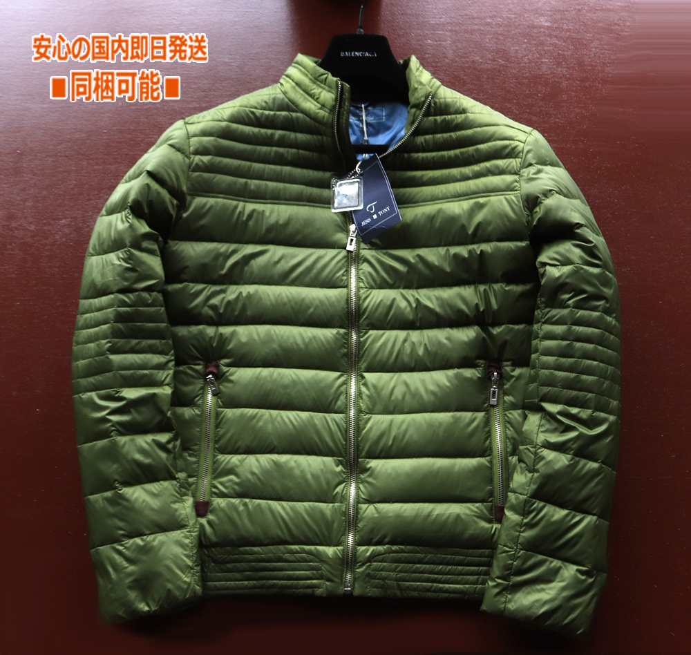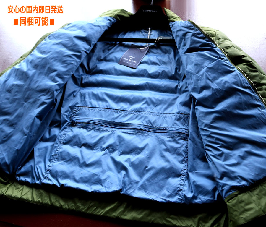 新品■欧州JESS 秋冬 超軽量 ライト ダウン ジャケット 緑 XL◆メンズ 紳士 カジュアル アウター 立ち襟 軽量 収納袋付 ジャンバー 薄手