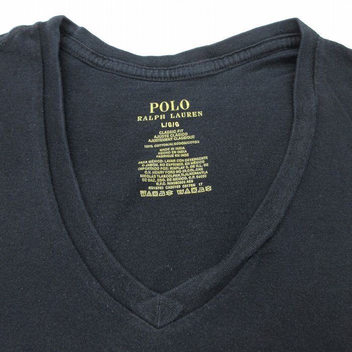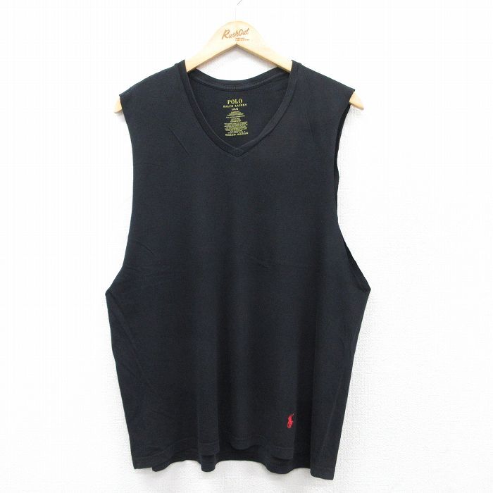 【商品名】 L★古着 ラルフローレン ノースリーブ ブランド Tシャツ メンズ ワンポイントロゴ コットン Vネック 黒
