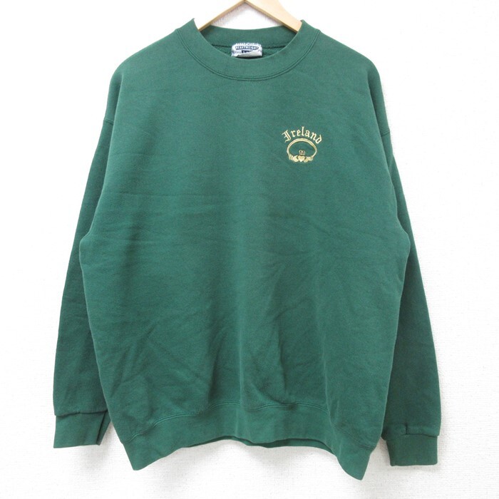 【商品名】 L★古着 リー Lee 長袖 スウェット メンズ 90年代 90s アイルランド クルーネック USA製 緑