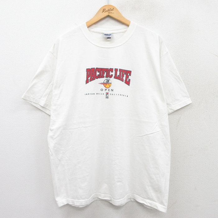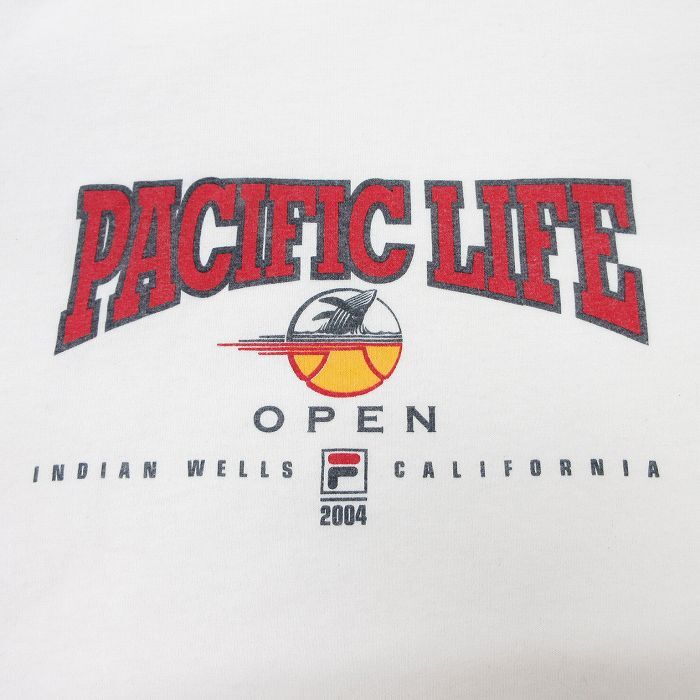 【商品名】 XL★古着 フィラ FILA 半袖 ビンテージ Tシャツ メンズ 00年代 00s PACIFIC LIFE コットン クルーネック USA製 白