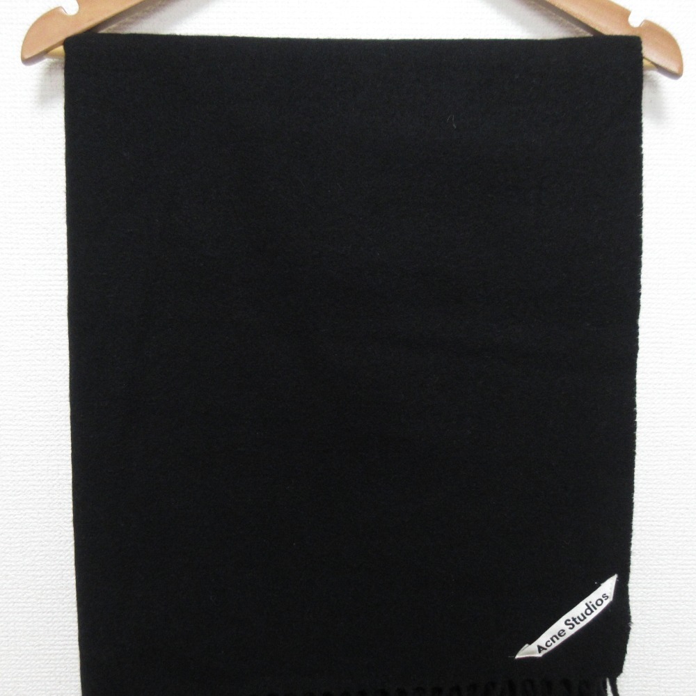 良品 Acne Studios アクネストゥディオズ 大判 ウール フリンジ マフラー ブラック