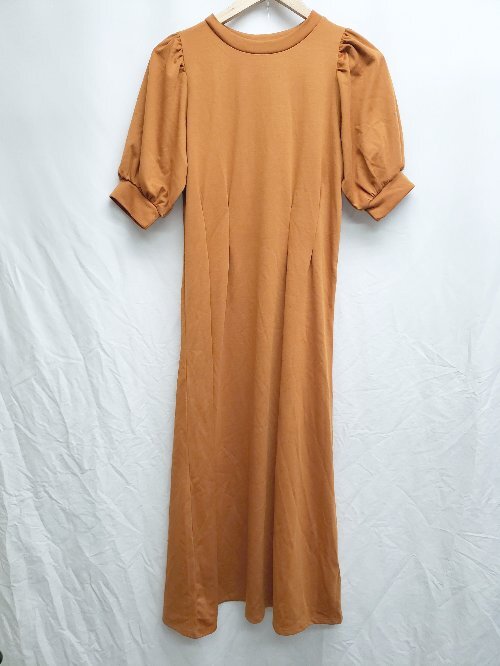 ◇ ⊂ AZUL BY MOUSSY アズールバイマウジー 五分袖 膝下丈 ワンピース サイズS ブラウン系 レディース P