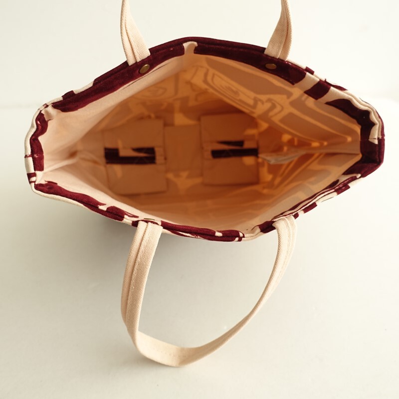 | 実寸サイズ:横/開口部30cm, 縦24cm, 底20.5×10cm, 持ち手29.5cm (多少の誤差はご了承ください) |