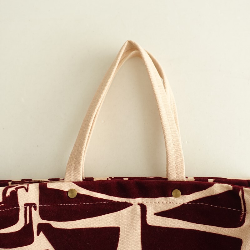 | 2024SS/mina perhonenのbird land トートバッグです。 「bird land」がフロッキープリントで施されたデザインです。 素材は綿100%で、持ち手の所にワンポイントで真鍮がついています。 持ち運びしやすいサイズ感のバッグです。 |