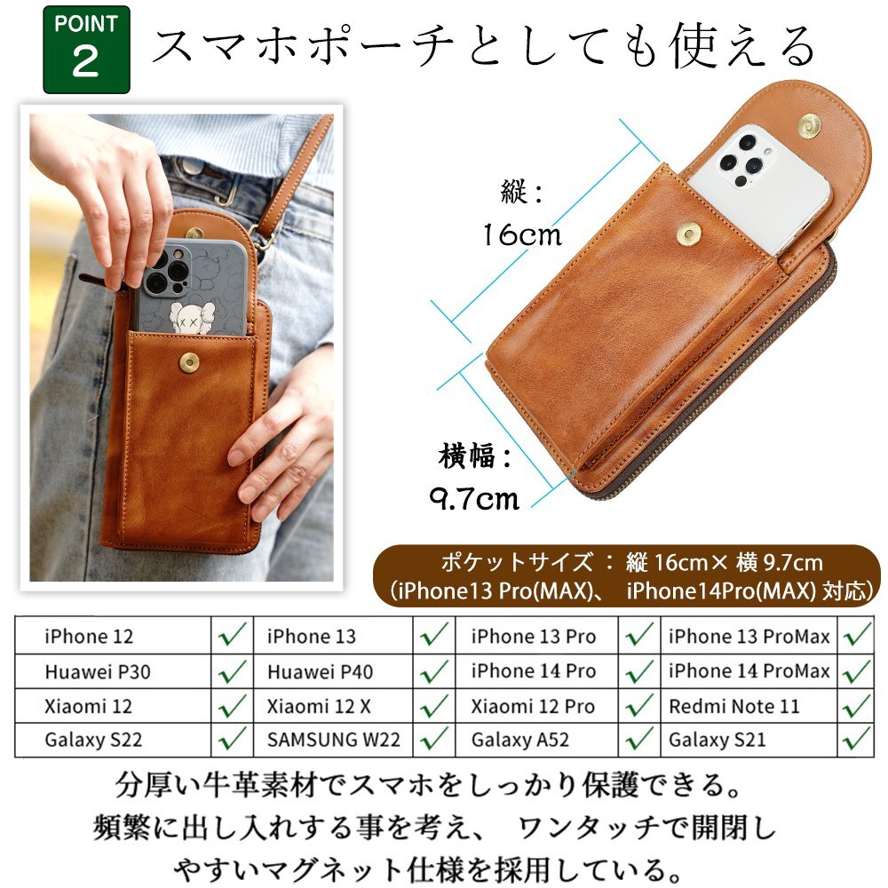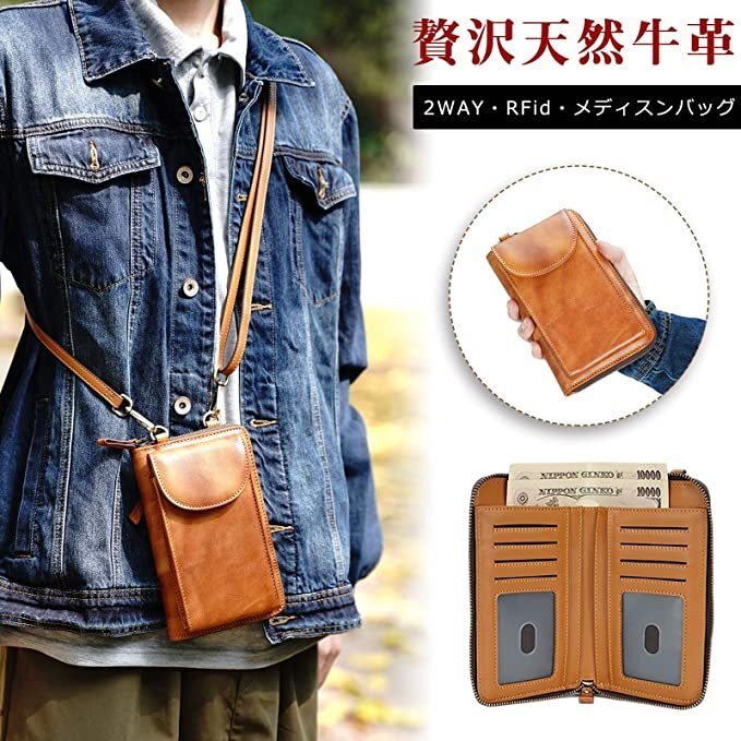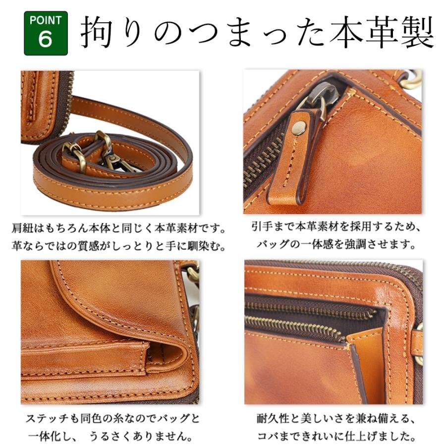 TIDING 小型 2WAY ショルダーバッグ 本革 牛革 メディスンバッグ セカンドバッグ スマホポーチ お札 カード入れ