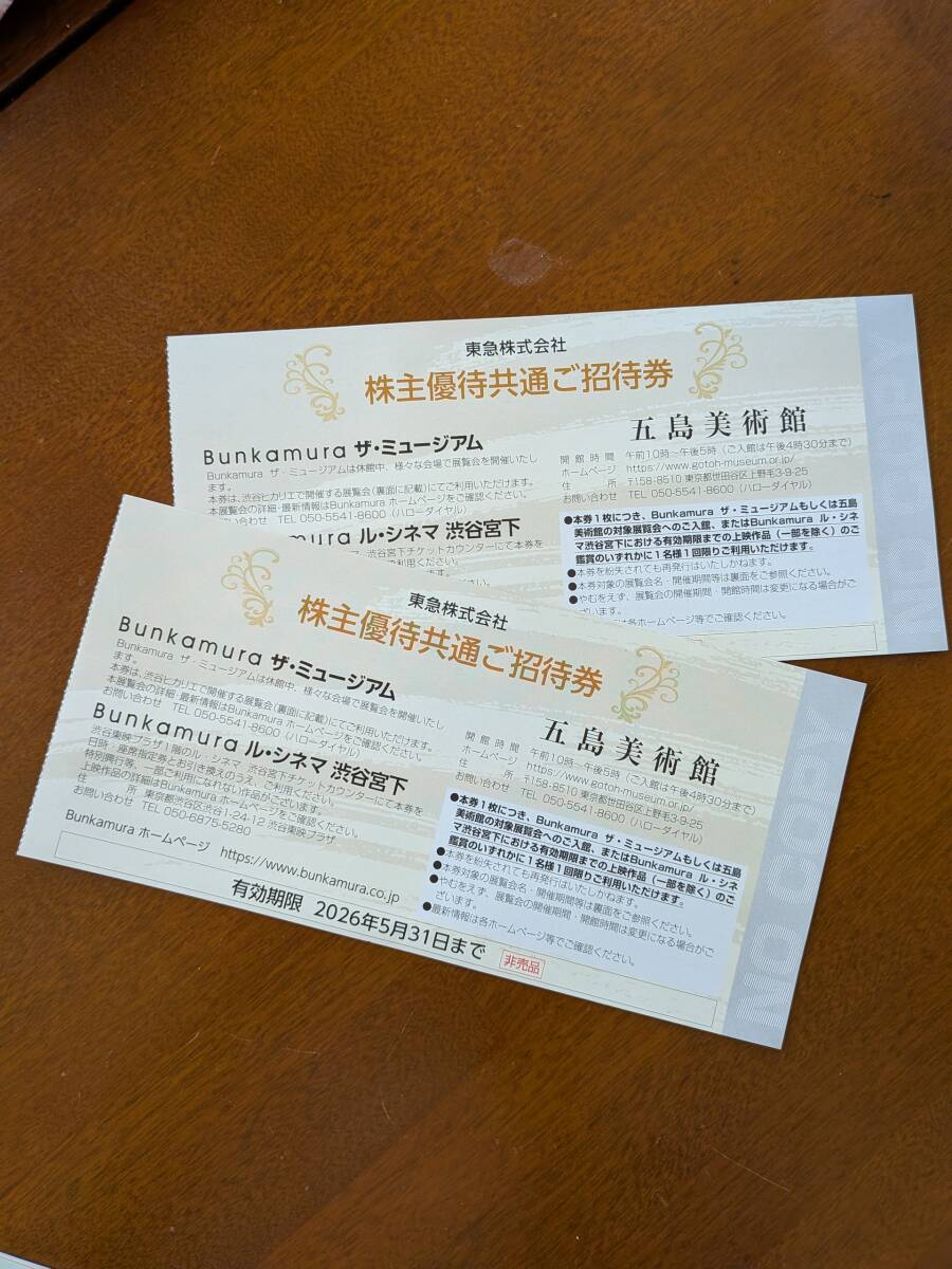 東急・Bunkamuraザ・ミュージアム/ ル・シネマ渋谷宮下/五島美術館 株主優待共通ご招待券 2枚セット  2026年5月31日まで