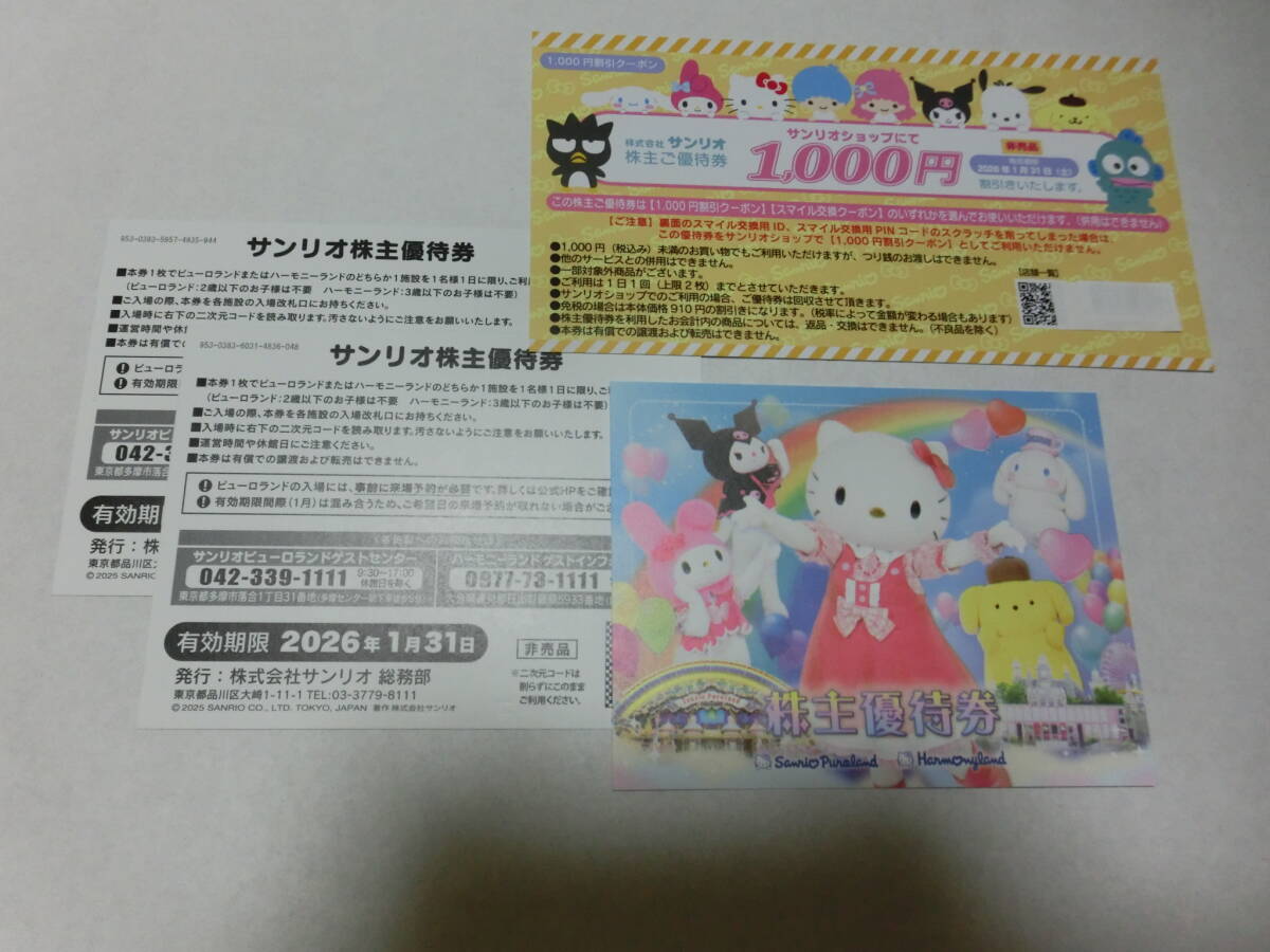 サンリオ株主優待券 サンリオピューロランド 3枚 割引クーポン券1枚 送料無料 有効期限2026年1月31まで