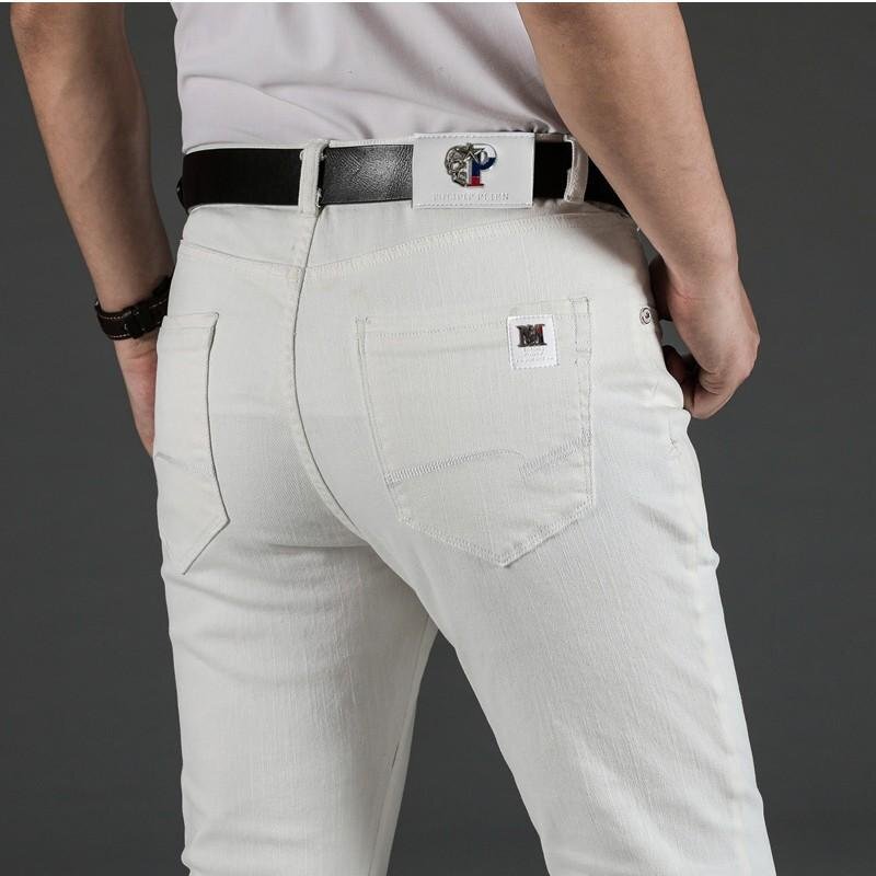 デニムパンツ ジーンズ メンズ ストレッチ ビジネス ホワイト 白 ズボン 爽やか 春 夏
