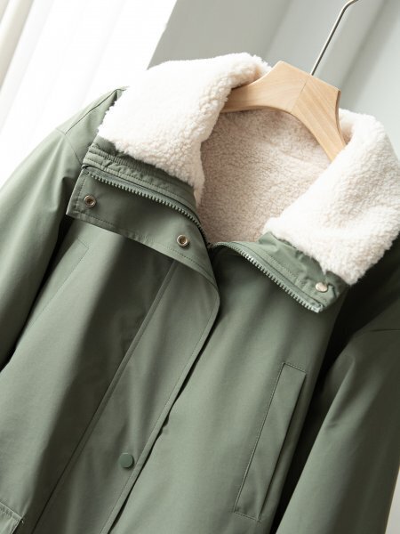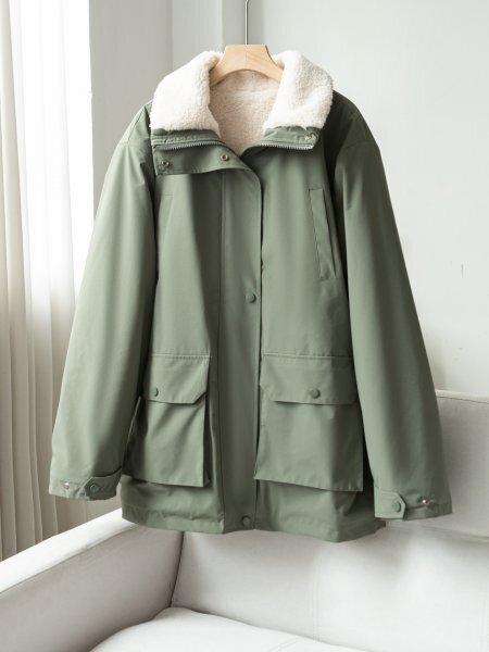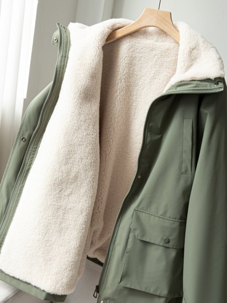 ジャケット 裏起毛 厚手 保温 ふわふわ ゆったり 無地 シンプル カジュアル アウター お出掛け グリーン Sサイズ xfz80.S