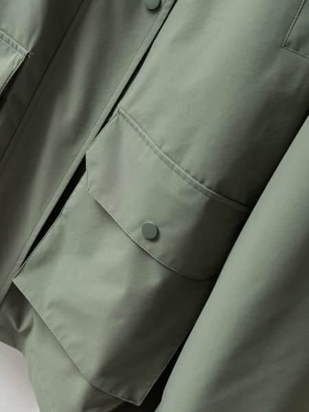 前立てのジッパーは、顎まで引き上げるとスタンドカラー になり、首元までしっかり暖かい仕様に。ジッパーを少し下げると折り襟になり、カジュアルながらも大人っぽい雰囲気で着こなせます。フロントには4つのポケットを配置し、収納力が抜群です。ゆったりとしたシルエットなので、重ね着しても窮屈感なくリラックスして着用できます。
