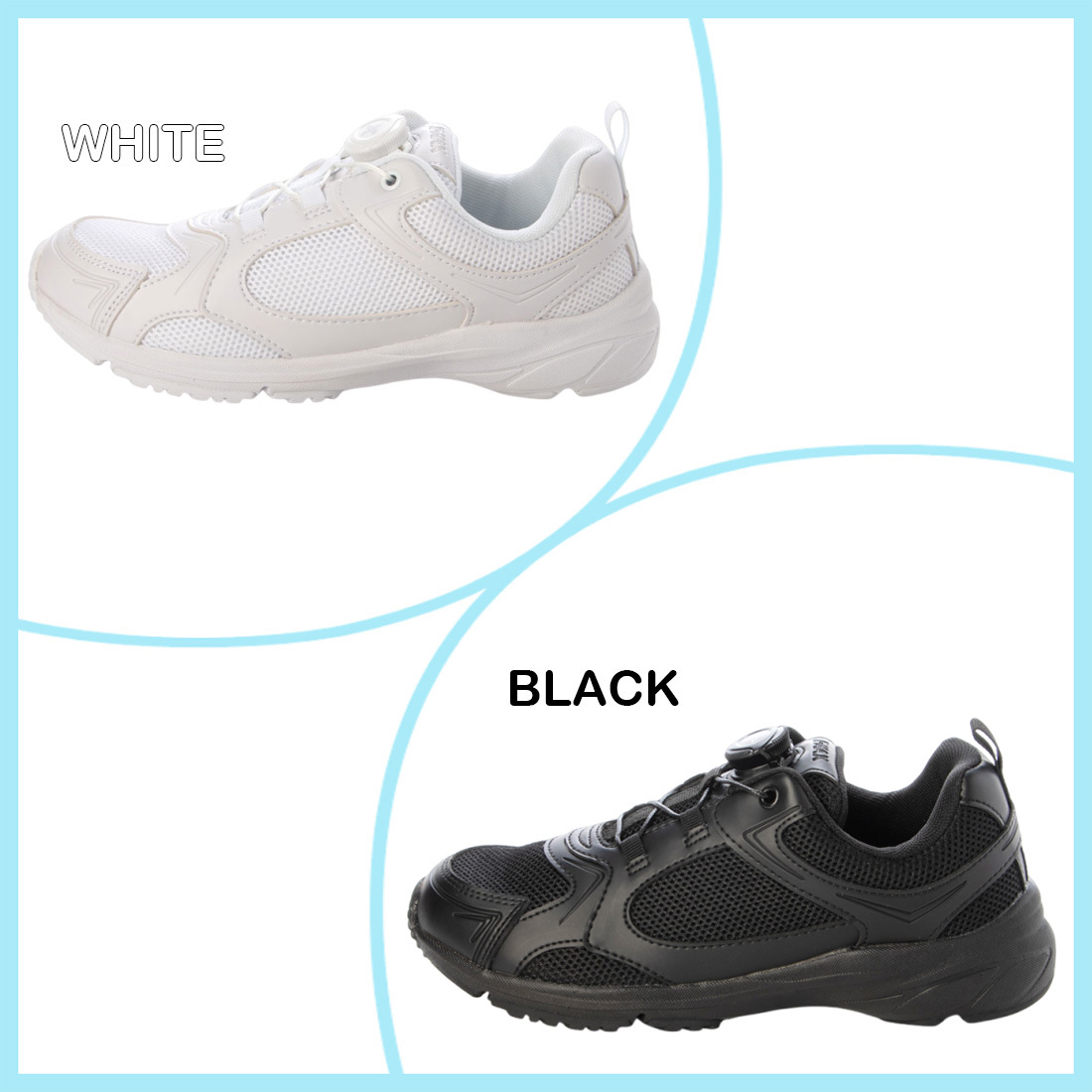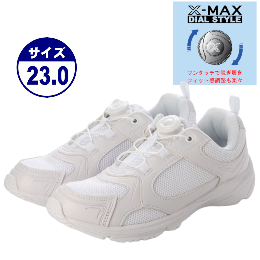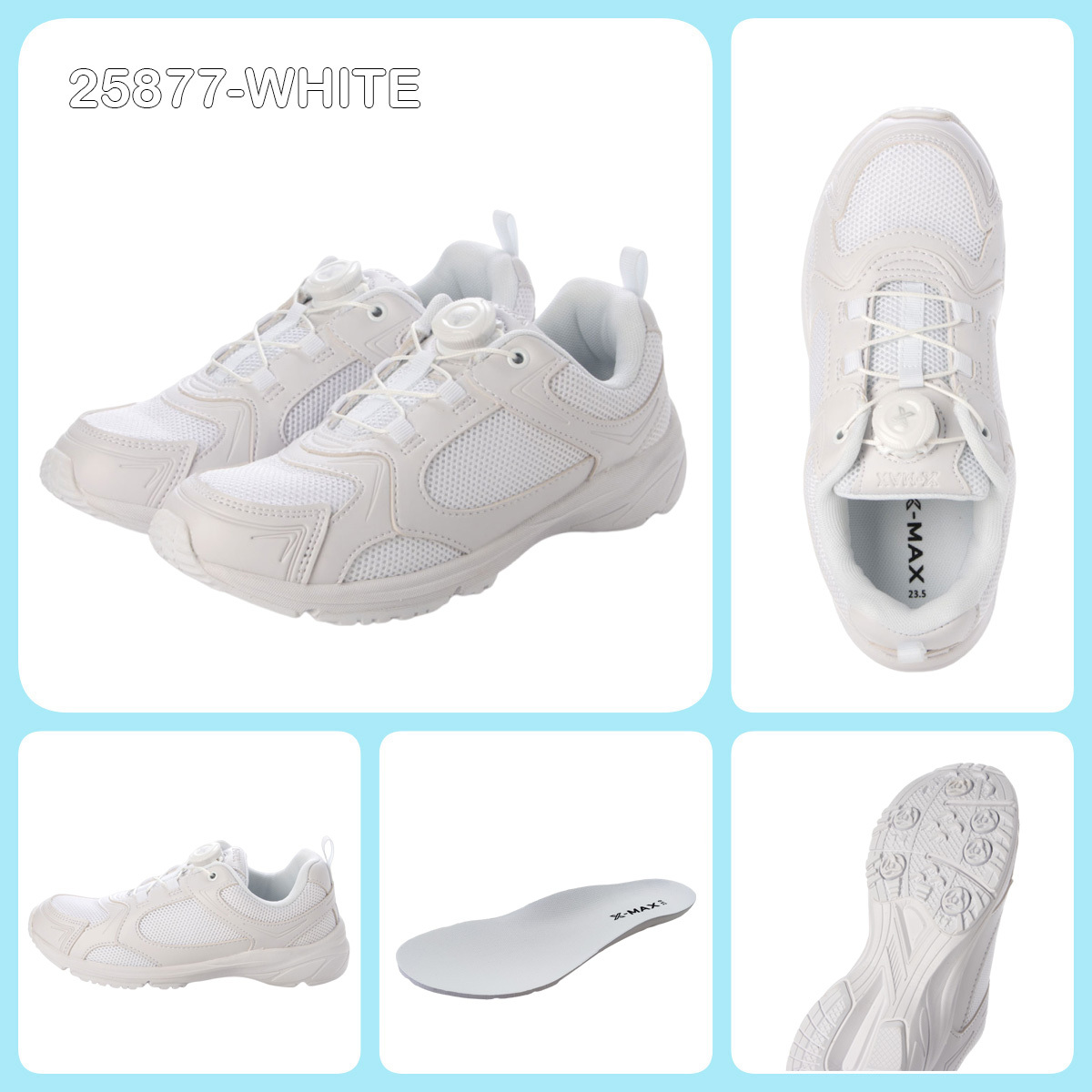 キッズ ジュニア ダイヤル式 スニーカー ワンタッチ ダイヤル 運動靴 通学靴 スクールシューズ ランニングシューズ 25877-wht-230