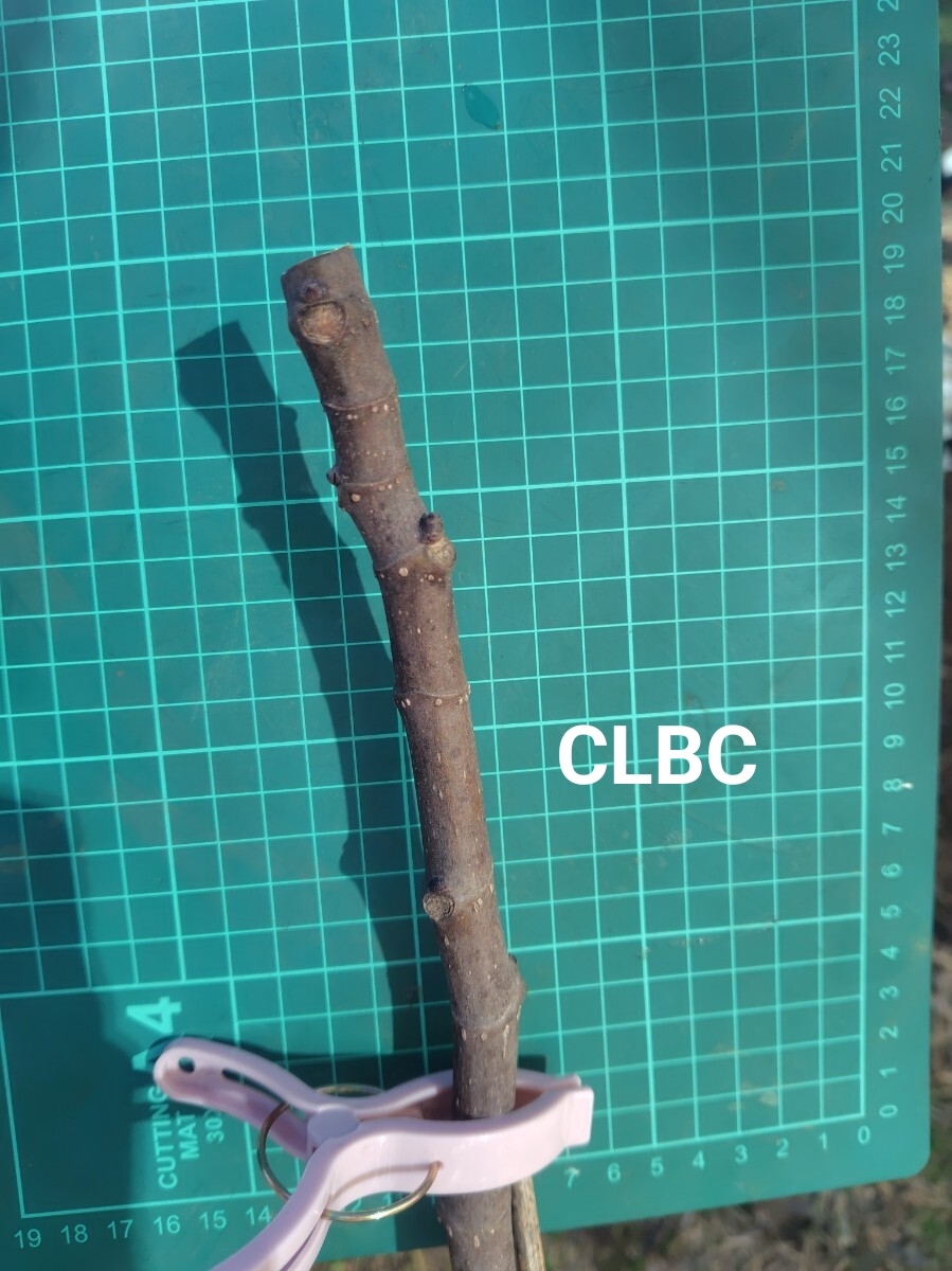 栽培開始から3年以内で、当方でまだ収穫実績無し、もしくはまだしっかりとした収穫実績のない品種等の穂木のセットです。洗濯バサミの位置でカットします。