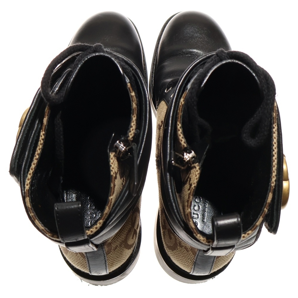 GUCCI グッチ ダブルG レザー キャンバス アンクルブーツ ブラック/ブラウン レディース 678984