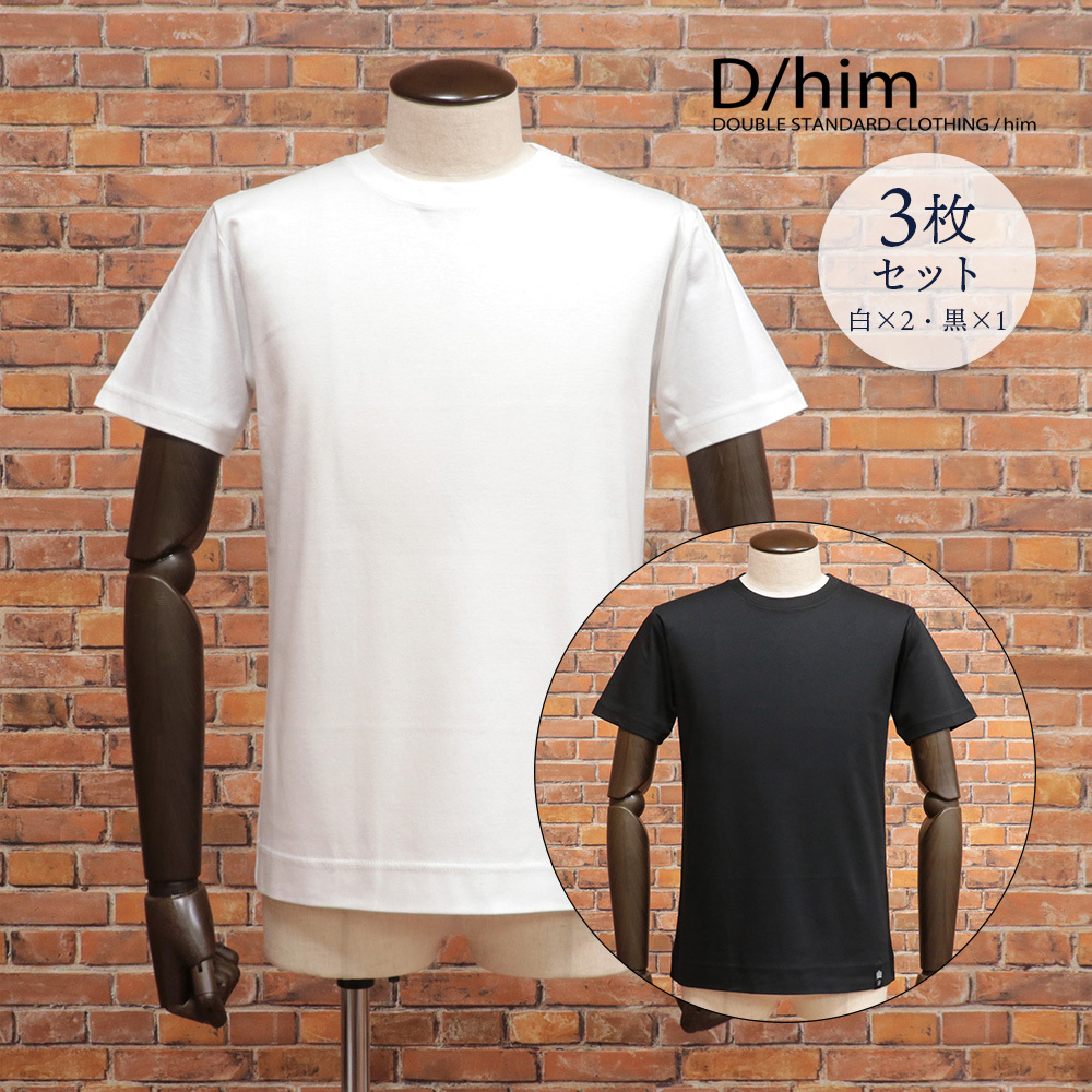 1円/D/him/44サイズ/3枚セット 丸首カットソー 0708-020-183 上質ピマコットン なめらか 無地 日本製 半袖 新品/白・白・黒/pa154/