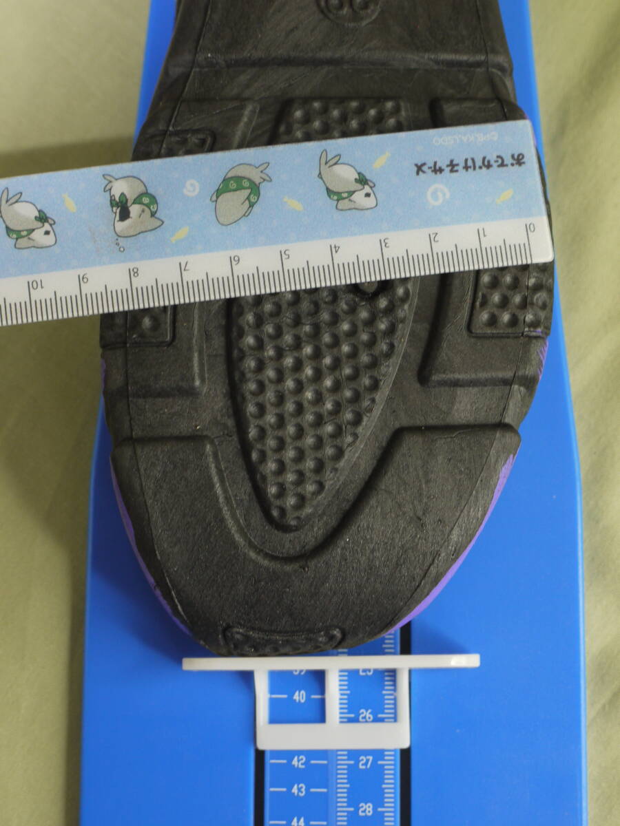 ホ)サイズの合わない靴を無理に履くと外反母趾その他思わぬ障害や怪我をしますので、無理に履かないでください