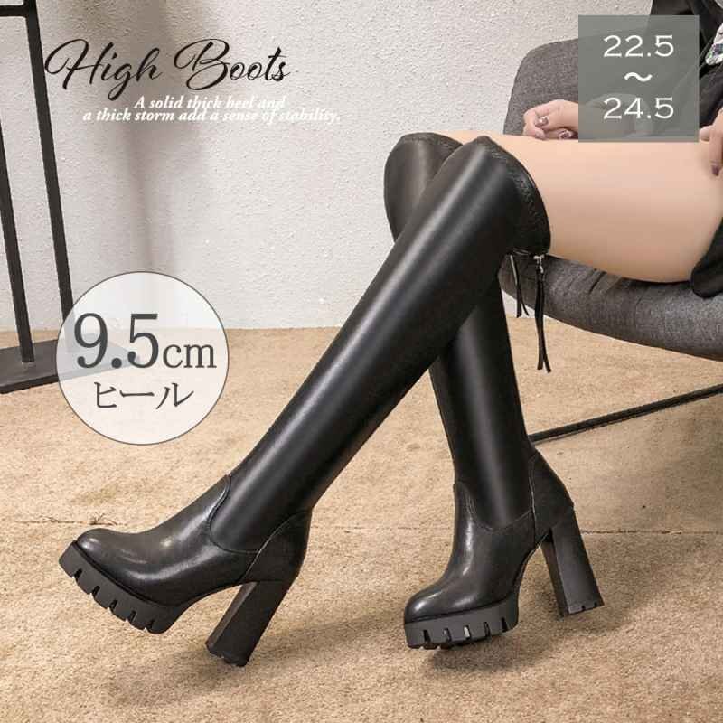 ロングブーツ ブーツ 合皮 韓国 22.5cm(35) ブラック
