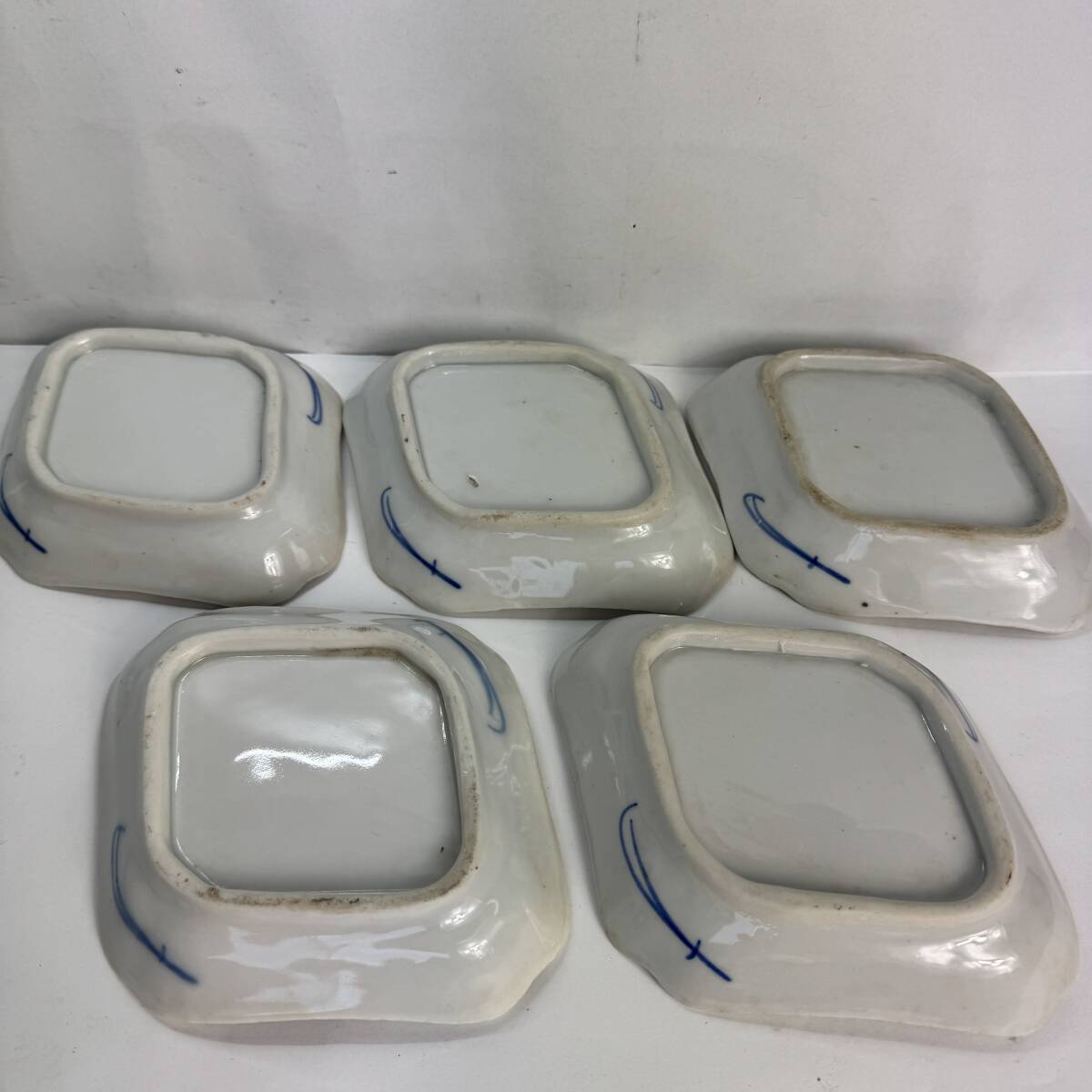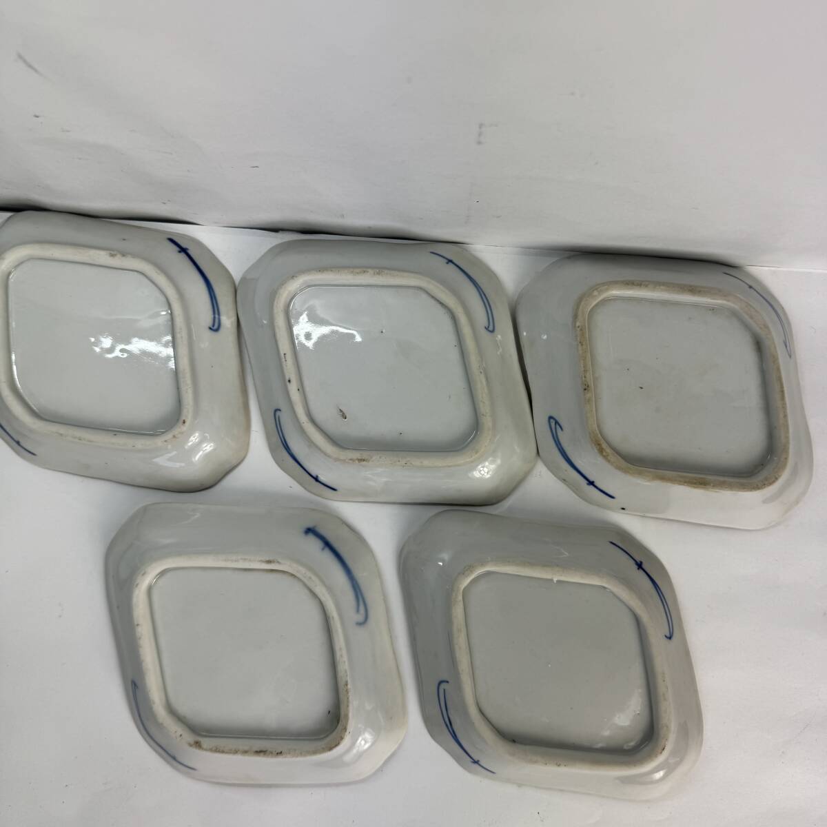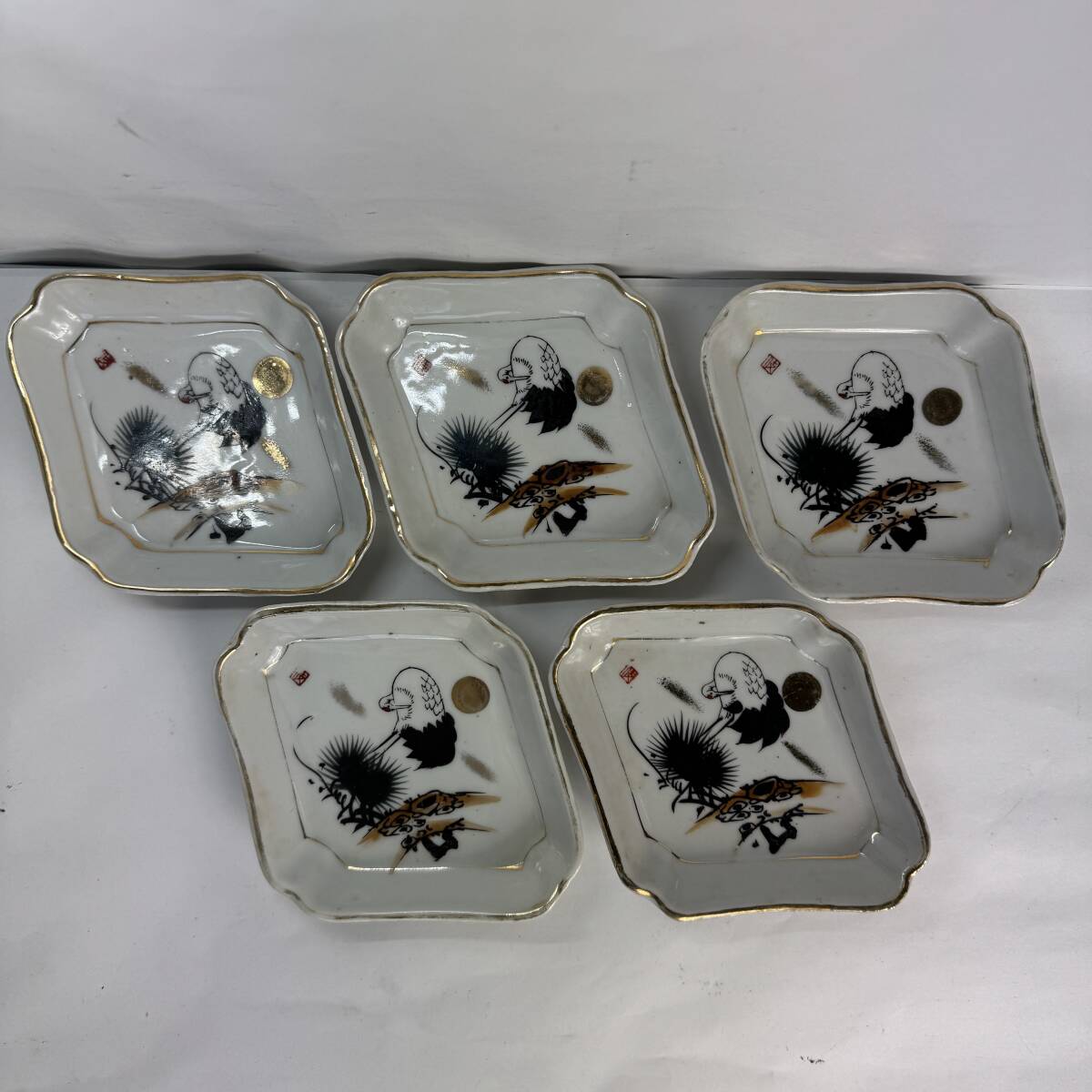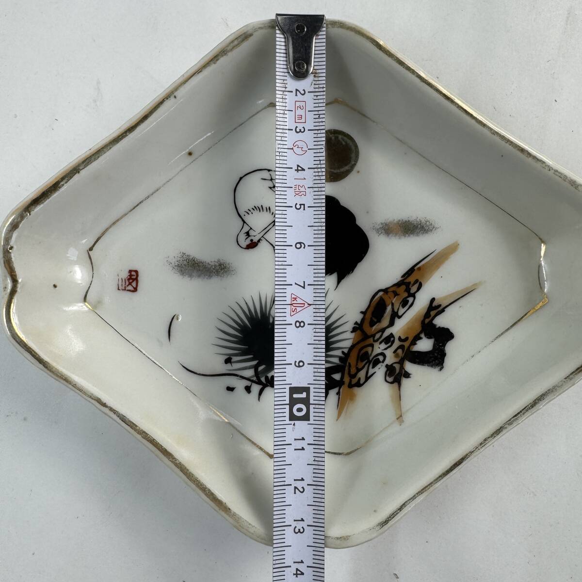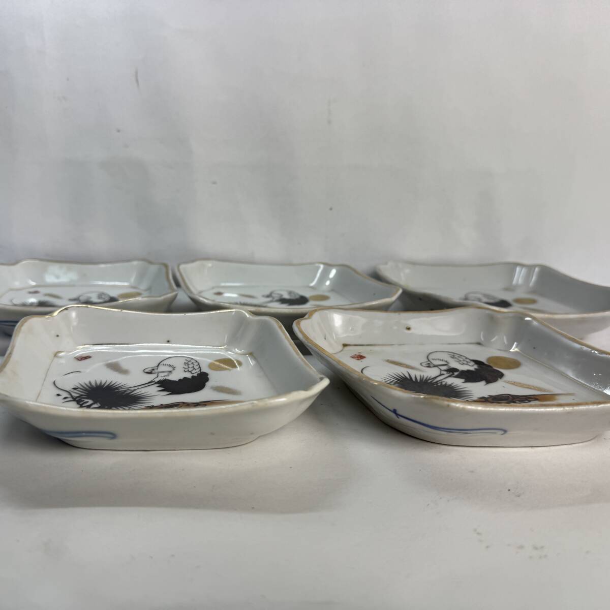 古伊万里 有田焼 岐 菱形皿 5枚セット 菱型皿 小皿 金彩 松鶴図 月 和食器 陶器 骨董品 プレート テーブルウェア 長期保管品 K1p R71212