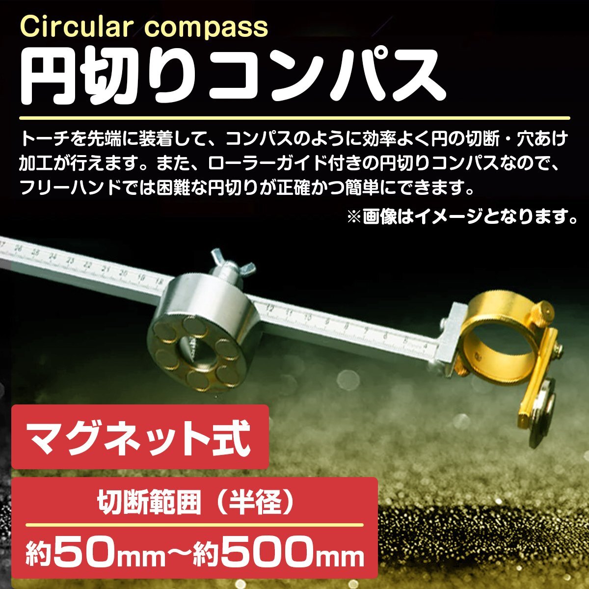 商 品 説 明トーチを先端に装着して、コンパスのように効率よく円の切断・穴あけ加工が行えます。