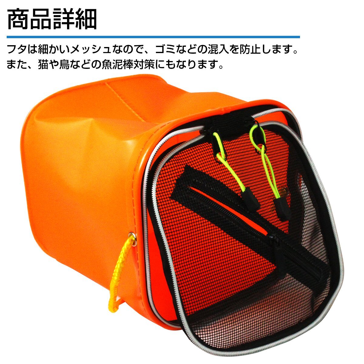 商 品 説 明メッシュの蓋がついているので、魚を生かしたまま保持可能!