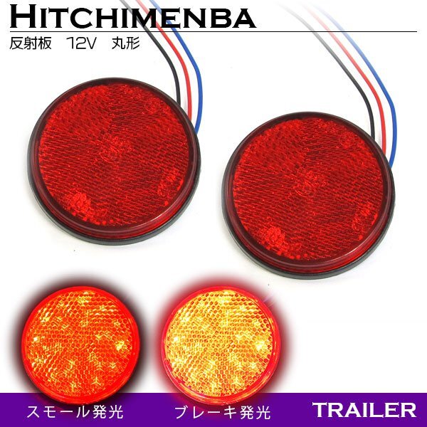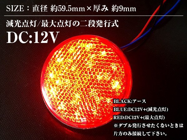 ダブル発光 光る LEDリフレクター 反射板 丸形 12V レッド 赤 1セット 2個 サイドマーカー トラック トレーラー 旧車 汎用