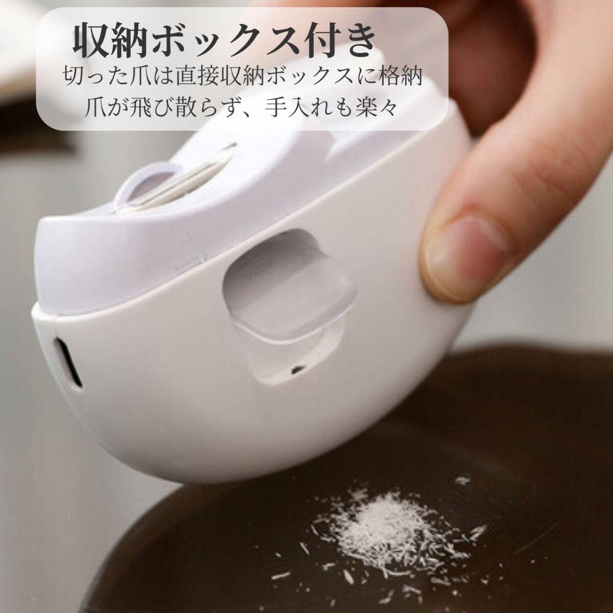電動爪やすり 【カラー】 ピンク ホワイト、パープルの販売もございます。 【特長】 - 爪切りと爪磨きが1台で可能! - 徐々に爪の半円を描くように動かし、切りすぎを防ぐ。 - 360°回転式爪磨きで、爪の表面もピカピカ!清潔感アップ! 【2段階回転速度】 - 2段階のスピード調節可能。 - 爪削りダストが本体のダストボックスに溜まるので、捨てる際に便利。 【安全性とデュアルスピード調整】 - 2つの速度設定で効率的かつ安全にトリミング可能。 - 子供の柔らかい爪から硬い爪まで対応。 - 安全ロック設計でお子様も安心して使用可能。 【使用感&静音設計】 - 人間工学に基づいた設計で握りやすく、手に馴染む。 - LED照明搭載でトリミングが明瞭。 - 超静音設計で、使用時の騒音は約45デシベル。 【Type-C充電式】 - USBソケットやモバイルバッテリーなど、さまざまな機器で充電可能。 - コンパクトで持ち運びに便利、保証期間は1年間。 【爪切りと爪磨きが1台2役】 - 先進的な電動モーター技術で高速切削。 - サンディングヘッドでなめらかに仕上げ、ネイルチップ収納庫で清潔に保つ。 【使用方法】 爪磨きボタンと爪削りボタンを同時に2~3秒長押しすると、電源がオンになります(緑のランプが点灯)。 爪削り:右のボタンを押すと爪削りが動きます(弱モード)。もう一度右ボタンを押すと強モードに切り替わります。 爪磨き:左のボタンを押すと爪磨きが動きます(弱モード)。もう一度左ボタンを押すと強モードに切り替わります。 【注意事項】 ・送料の都合上、箱なしでの簡易包装での発送となる場合がございます。 ・海外製品の為、多少の傷や汚れがある場合がございます。 関連ワード 電動爪切り 爪切り 電動つめ削り 足の爪 2in1 爪磨き つめきり 角質ケア 爪やすり LEDライト付き 巻き爪 厚い爪 爪ケア USB充電式 ワイヤレス 2段階スピード 爪研ぎ 足爪用 赤ちゃん 介護用 高齢者 足用 男女兼用 敬老の日 ギフト プレゼント