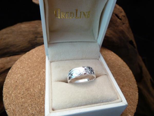 ◆デザイン紹介 本場ハワイから直輸入したハワイアンジュエリーのシルバーリングです。 リング一周にプルメリアと波がモチーフになった彫刻が綺麗にデザインされています。 ギフトに大人気のデザインで、ペアリングやピンキーリングとしてもオススメです。 ◆GIFTラッピング 300円 プレゼント用のラッピングをご希望の方は落札後ご連絡ください。 ◆ネーム彫り 1個 500円 リング、ペンダントへのネーム彫りをご希望の方は落札後ご連絡ください。 1文字づつ手彫りで彫刻しますので書体の指定はできません。(筆記体不可) 大文字、小文字、数字の組み合わせは可能ですがアイテムにより入れられる文字数が変わってきます。 コメント欄にご希望の文字列を明記ください。 例: k to t 21.2.25 (11文字) ペアネックレスの場合はどちらか片方に彫って500円、両方に彫る場合は1000円になります。 なおデザイン上彫刻が不可能の場合もありますのであらかじめご了承下さい。 | ||||||||||||||||||||||||||||||||||||||||||||