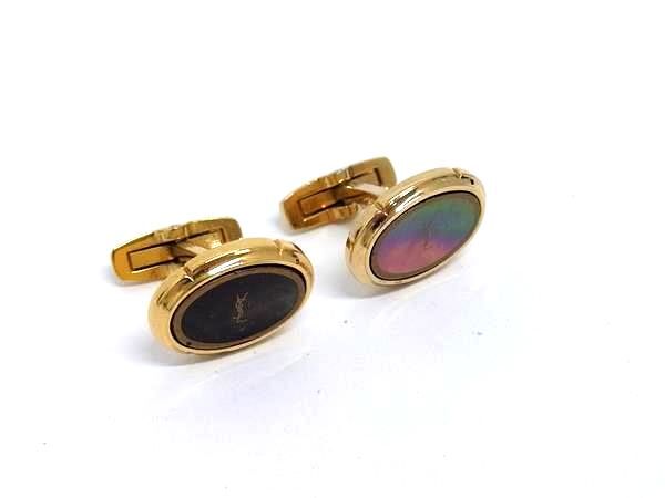 ■美品■ YVESSAINTLAURENT イヴサンローラン カフスボタン カフリンクス ネクタイピン アクセサリー 2点セット ゴールド系 DI7182