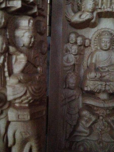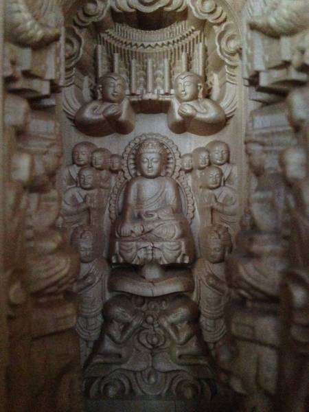 珍品卍超細密 ◆木彫り仏像 ◆如来像 三尊◆開閉式 小仏壇 仏箱 | ||||