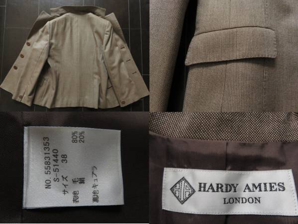 【HARDY AMIES】ハーディ エイミスの高級シルクウールジャケット、お色はライトブラウンです。