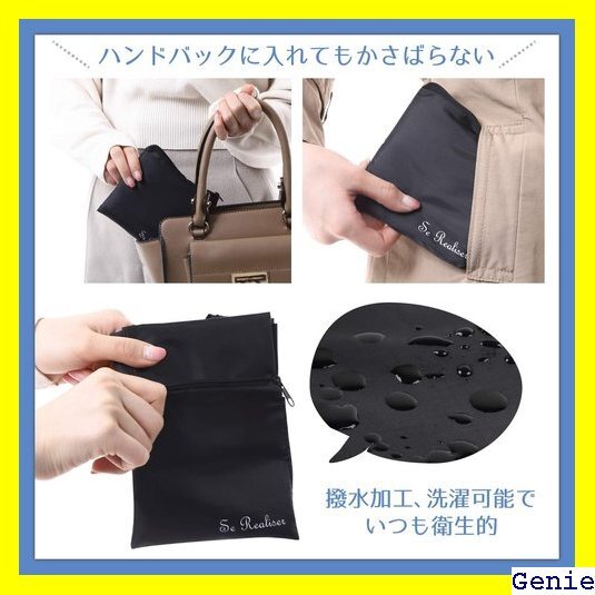 Se Realiser エコバック 買い物バック コン 撥水加工 黒 シンプル バックとポーチが別々で入れやすい 98