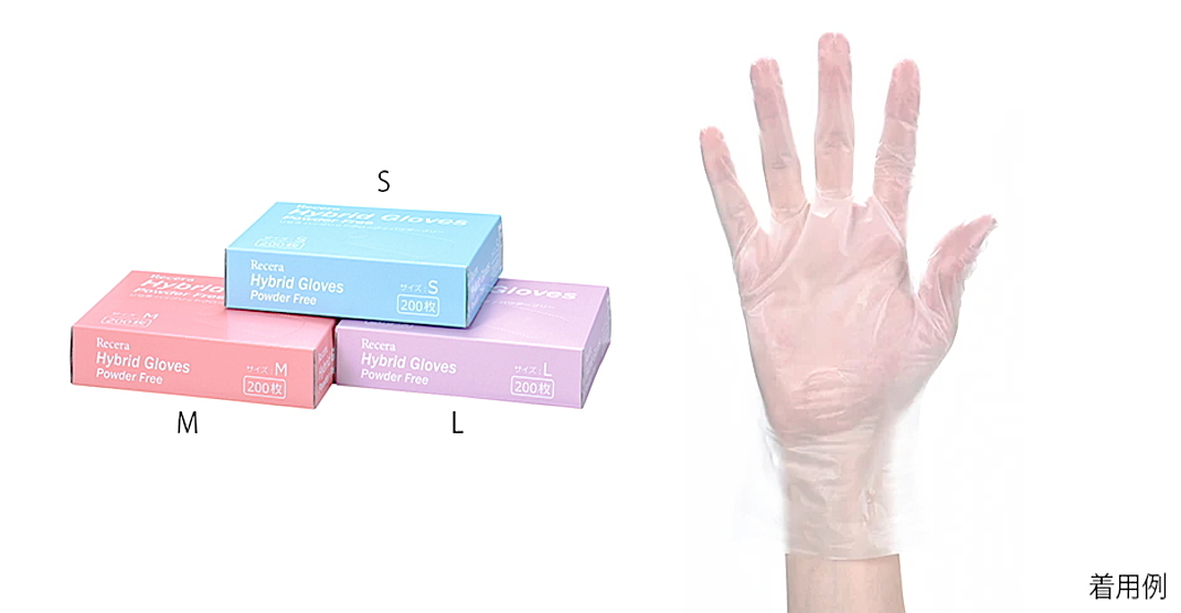| 商品名 | Tこな6111 Recera リセラ ハイブリッドグローブ 200枚入り パウダーフリー(粉無)S M Lサイズ 6点セット ポリエチレン 使い捨て 手袋 作業用 |