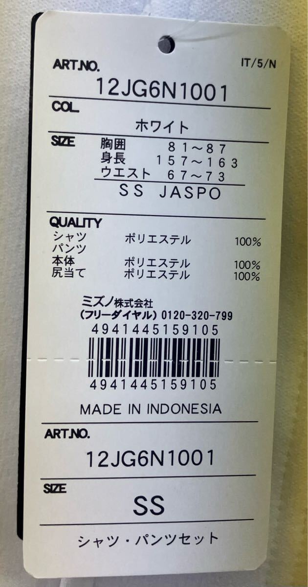 定価9570円 SS ミズノ 練習着 野球 ウェア ホワイト ユニフォーム シャツ パンツ ズボン 上下 セット ジュニア 少年 膝二重 12JG6N10