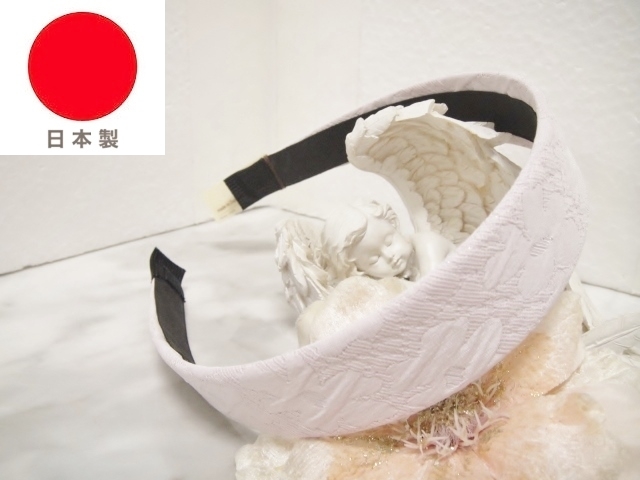 ♪ 新品 日本製 Made in Japan カチューシャ『高品質/幅広/平/ラメレース/フラワープリント柄/花/ラメパールパステルピンク』♪