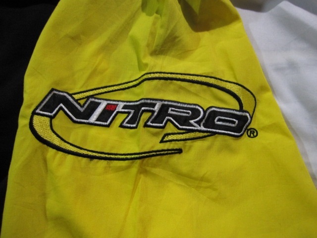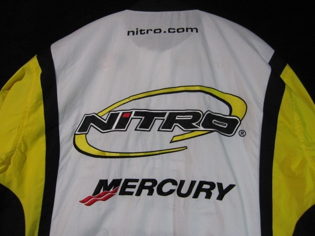 画像でもわかりますように、胸や背中・袖には NITRO のロゴや MERCURY のロゴが大きく刺繍されています。