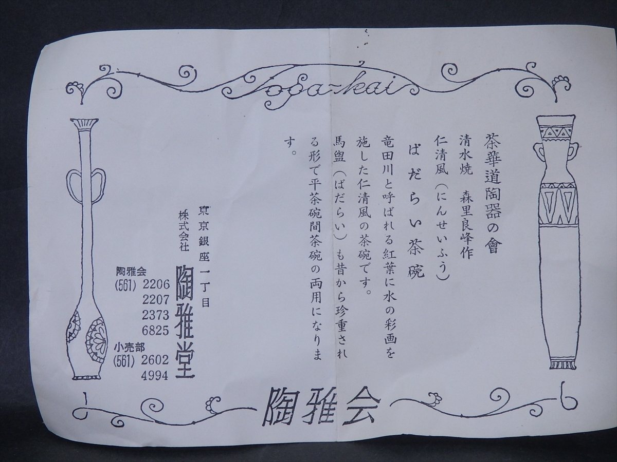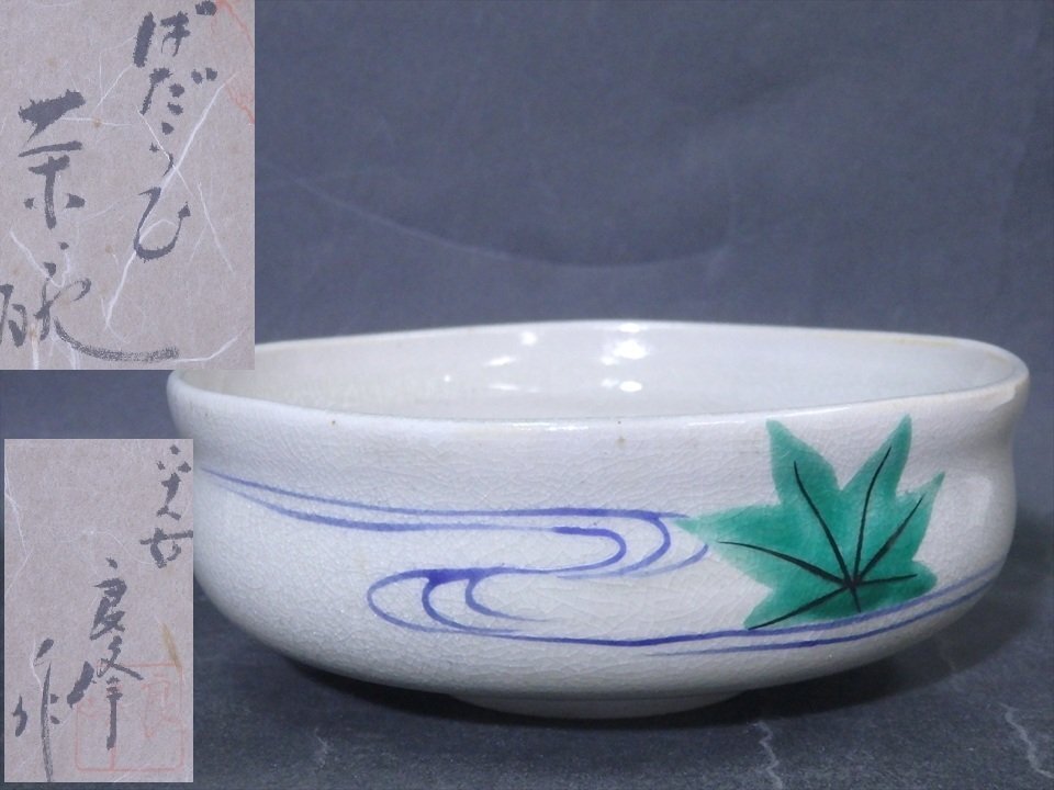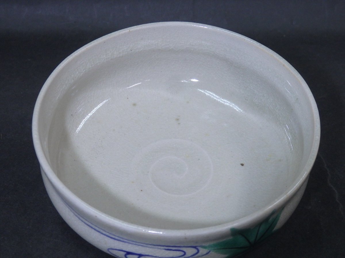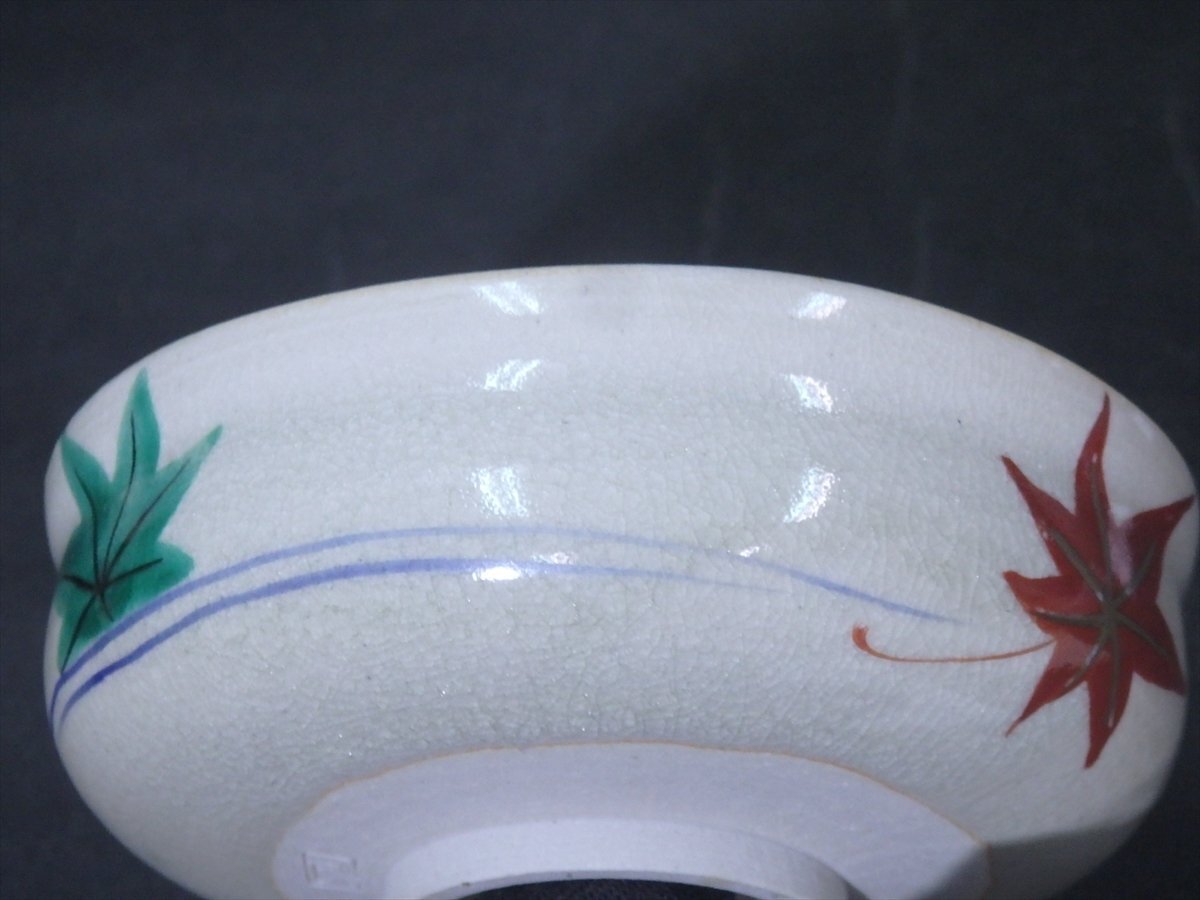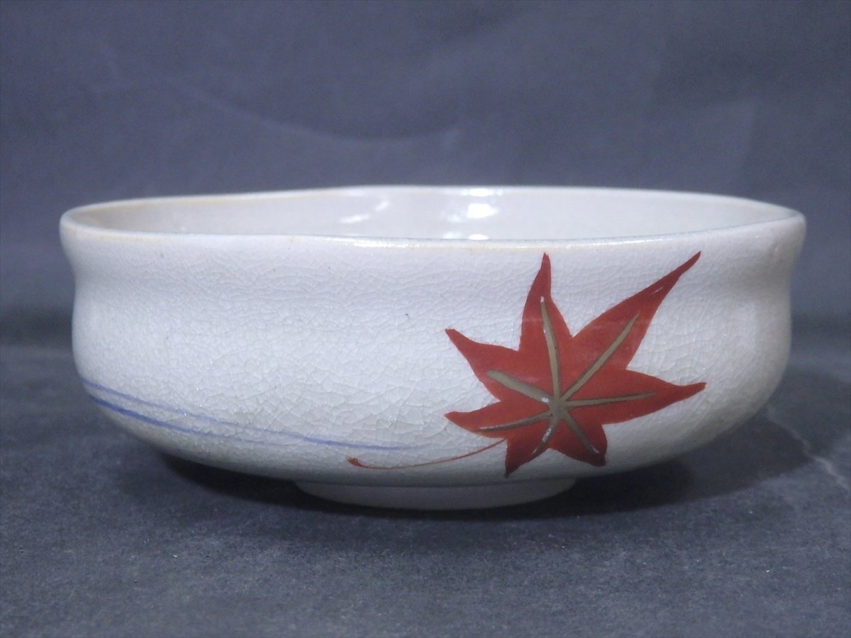 ★森里良峰造【馬盥茶碗】状態良好!仁清風 竜田川と紅葉に水に彩画 直径13.3×高さ5cm 茶道具 夏 清水焼 京焼 茶器