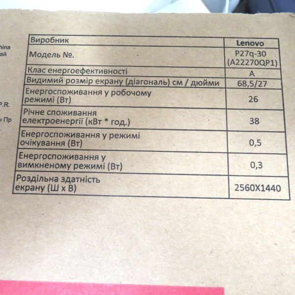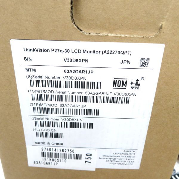 未使用/未開封 ThinkVision P27q-30 LCDモニター 27インチ 2560×1440