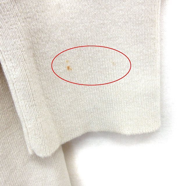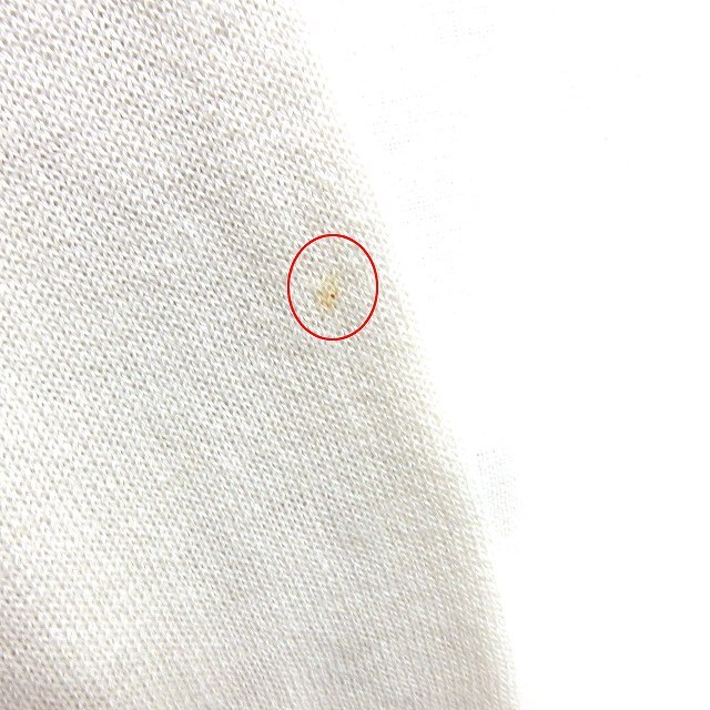 【状態】この商品には下記のようなダメージがあります。 ・左袖に2mm程度の茶色の汚れ ・前側中央に1mm程度の茶色の汚れ ・右袖に4mm程度の茶色の汚れ ・中央に1cm程度の黄色のシミ ※全体的に中古品としての使用感と上記のようなダメージがありますが、通常使用には支障のない商品です。掲載写真や記載内容をご確認いただき、ご理解の上ご購入ください。