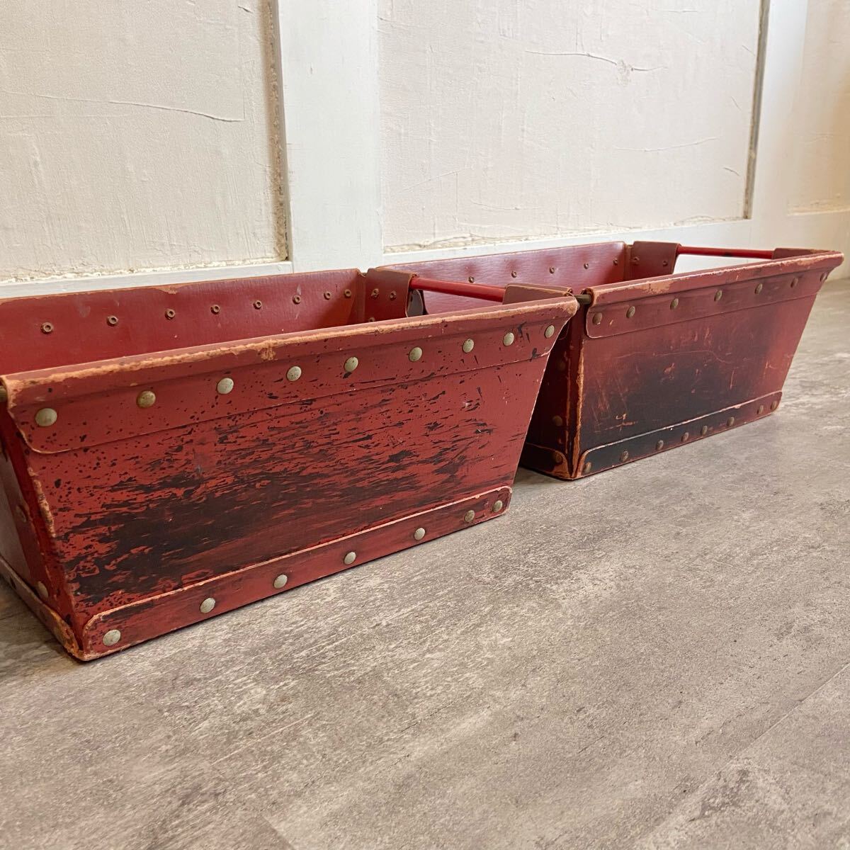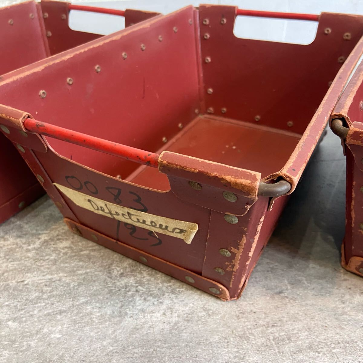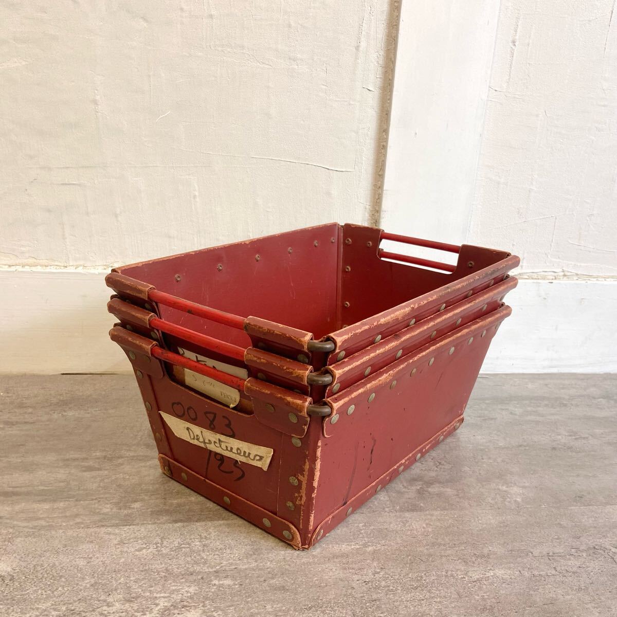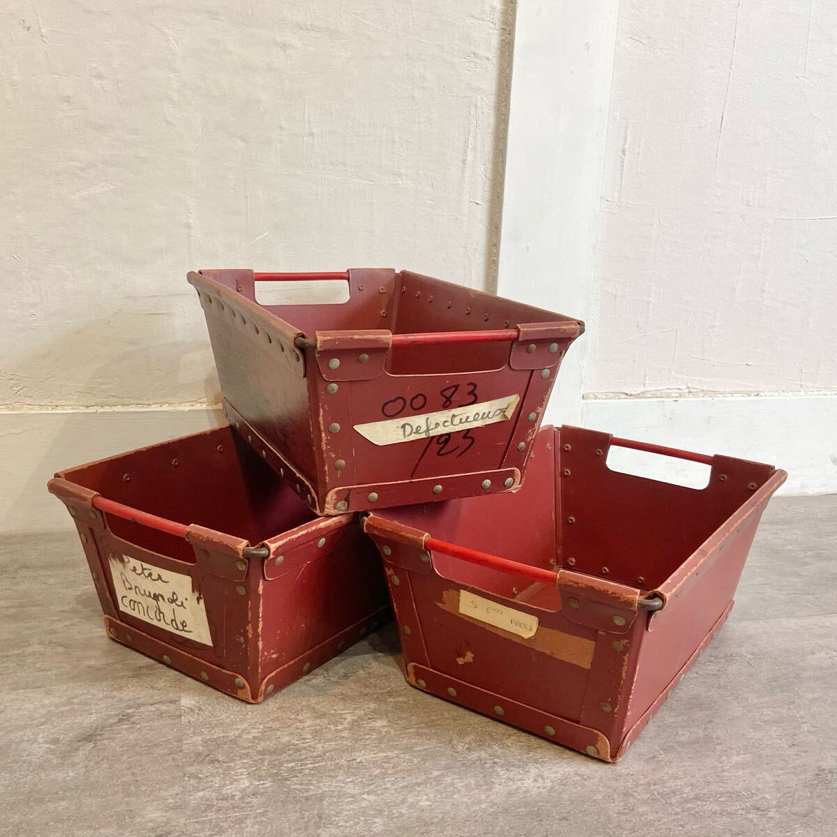 ■フランスヴィンテージ ボテ箱 30×15×15cm 3個セット エンジ色 ツールボックス 収納 小物入れ インテリア 雑貨 愛知県発送 317572