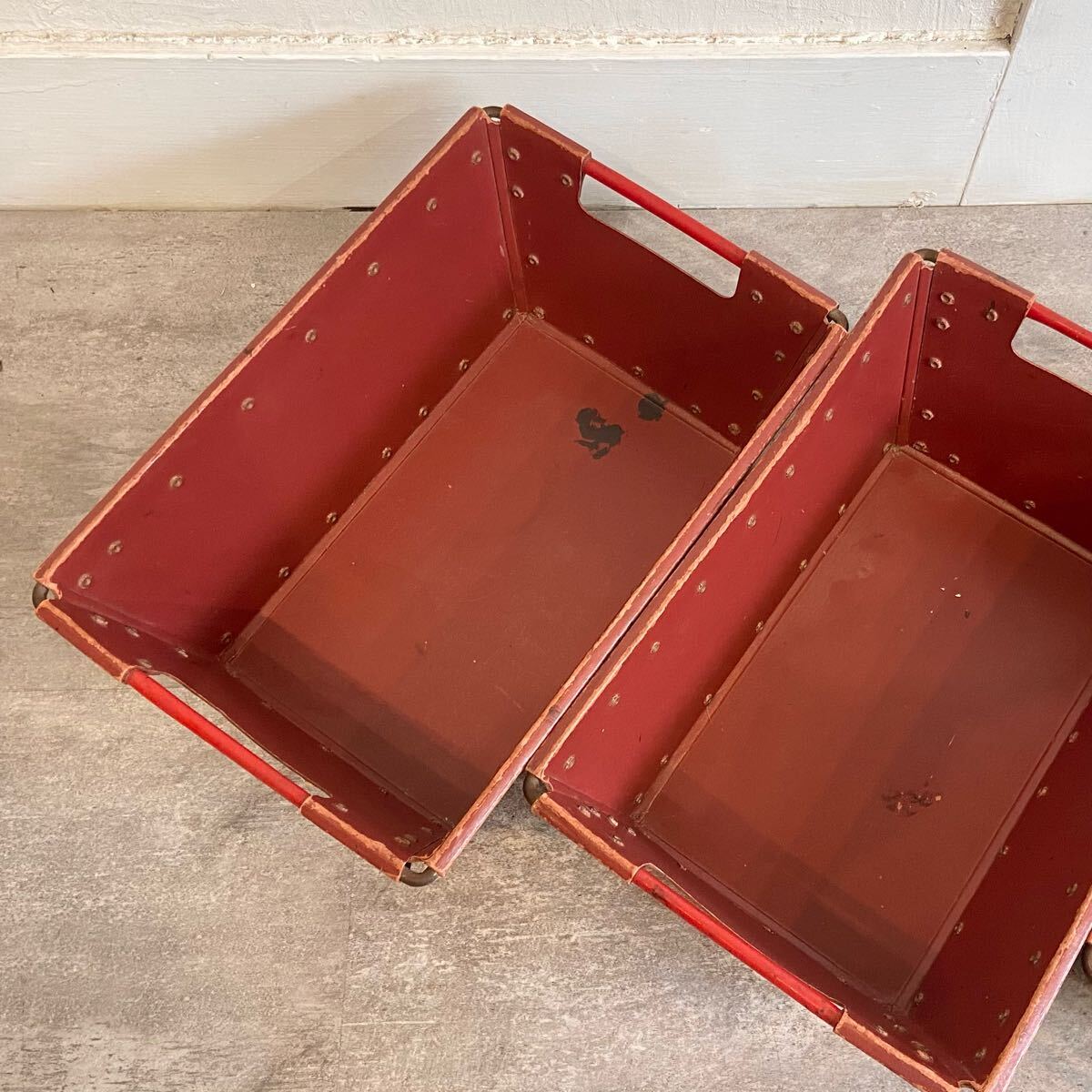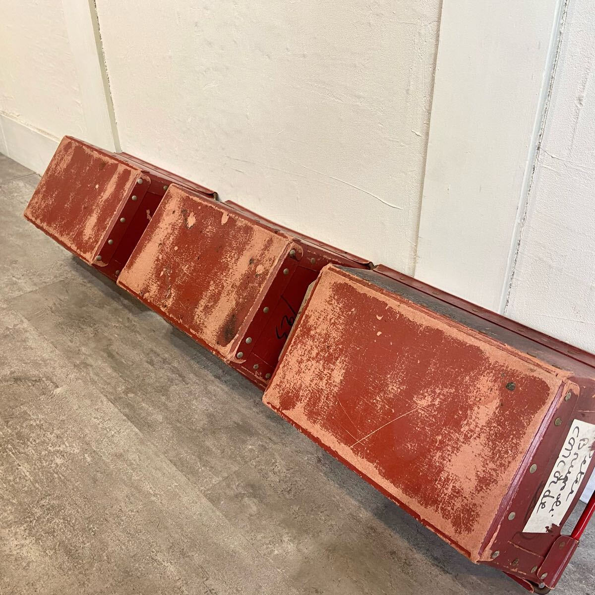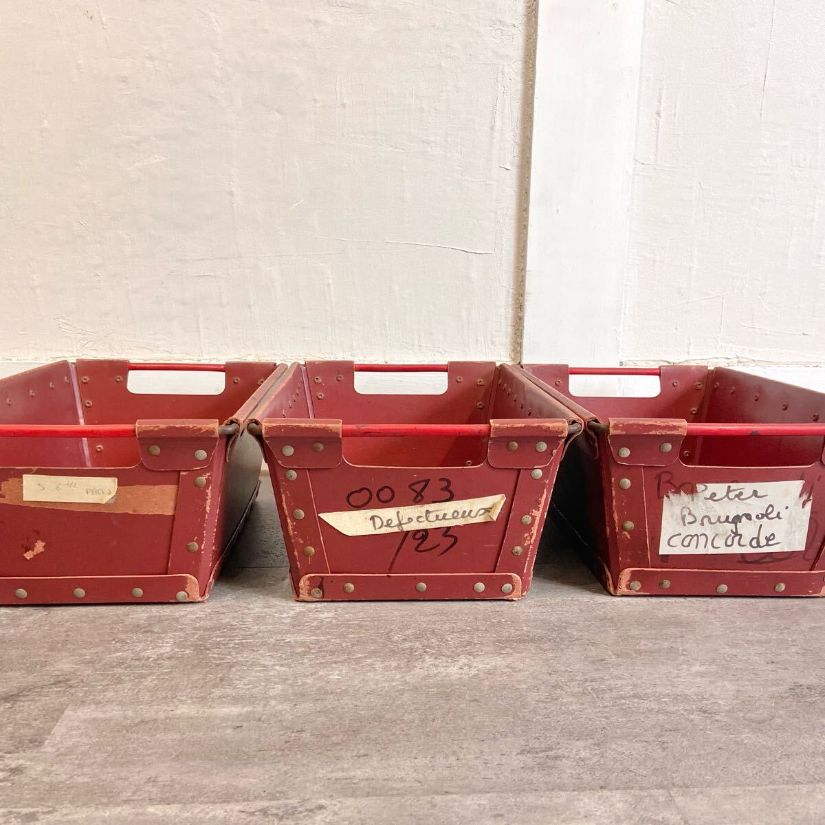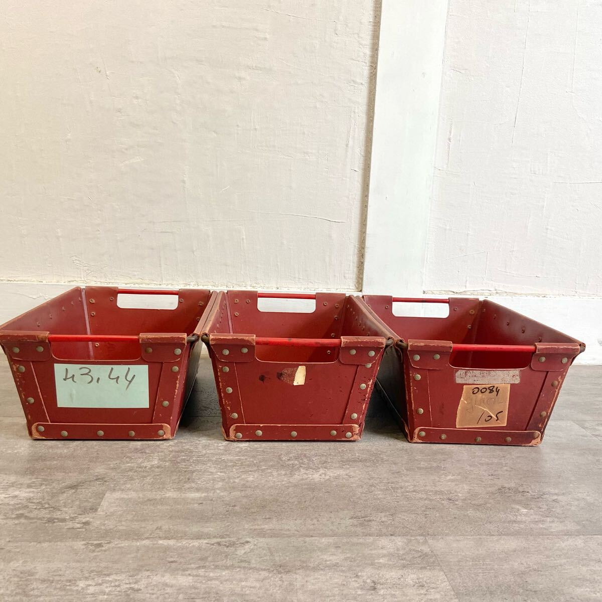 ■フランスヴィンテージ ボテ箱 30×15×15cm 3個セット エンジ色 ツールボックス 収納 小物入れ インテリア 雑貨 愛知県発送 317572
