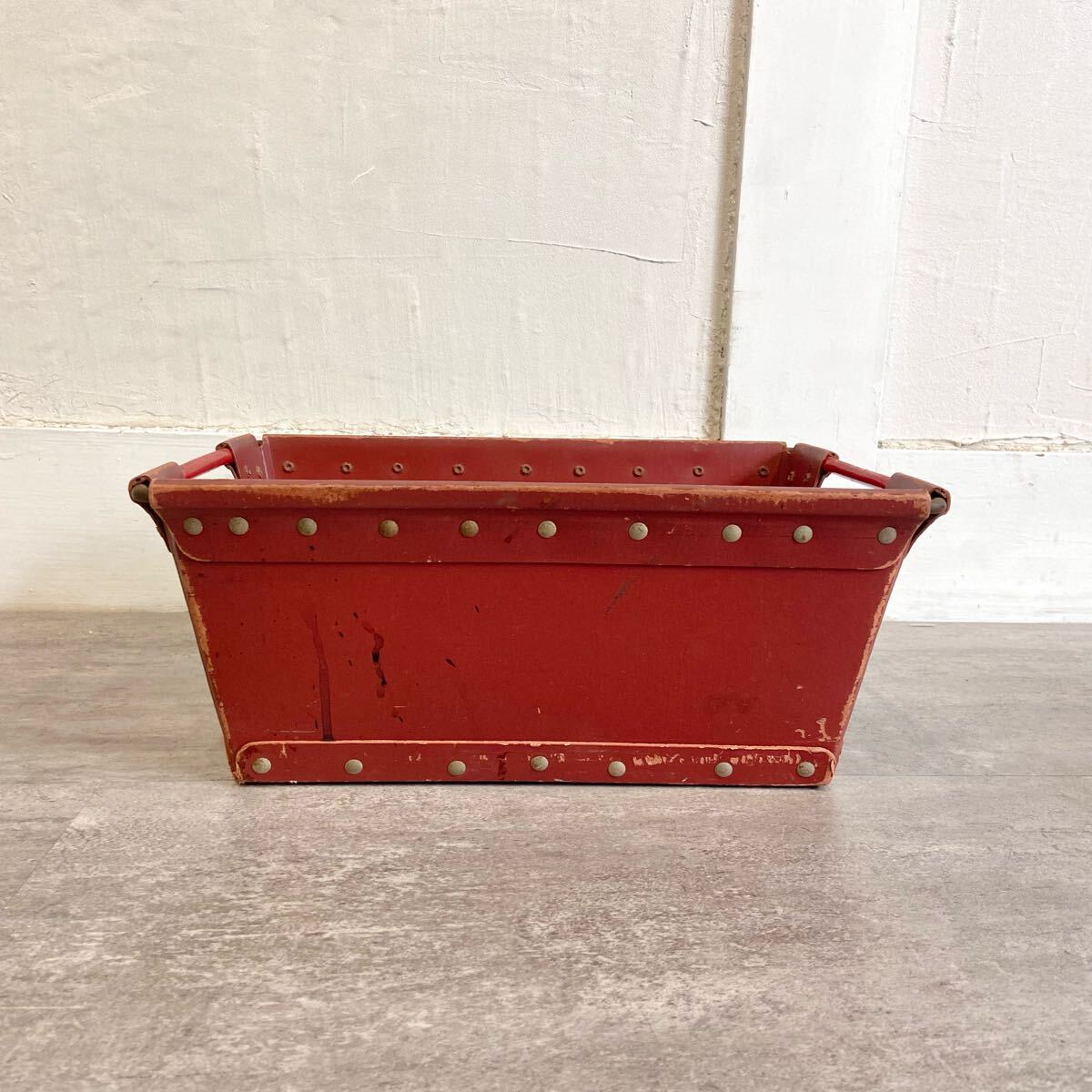 使い込まれた雰囲気たっぷりのボテ箱です。本来は工具などのツールボックスですが、細々した物の整理収納に大変便利です。コンパクトサイズで卓上用にもOK。店舗什器にもおすすめです。