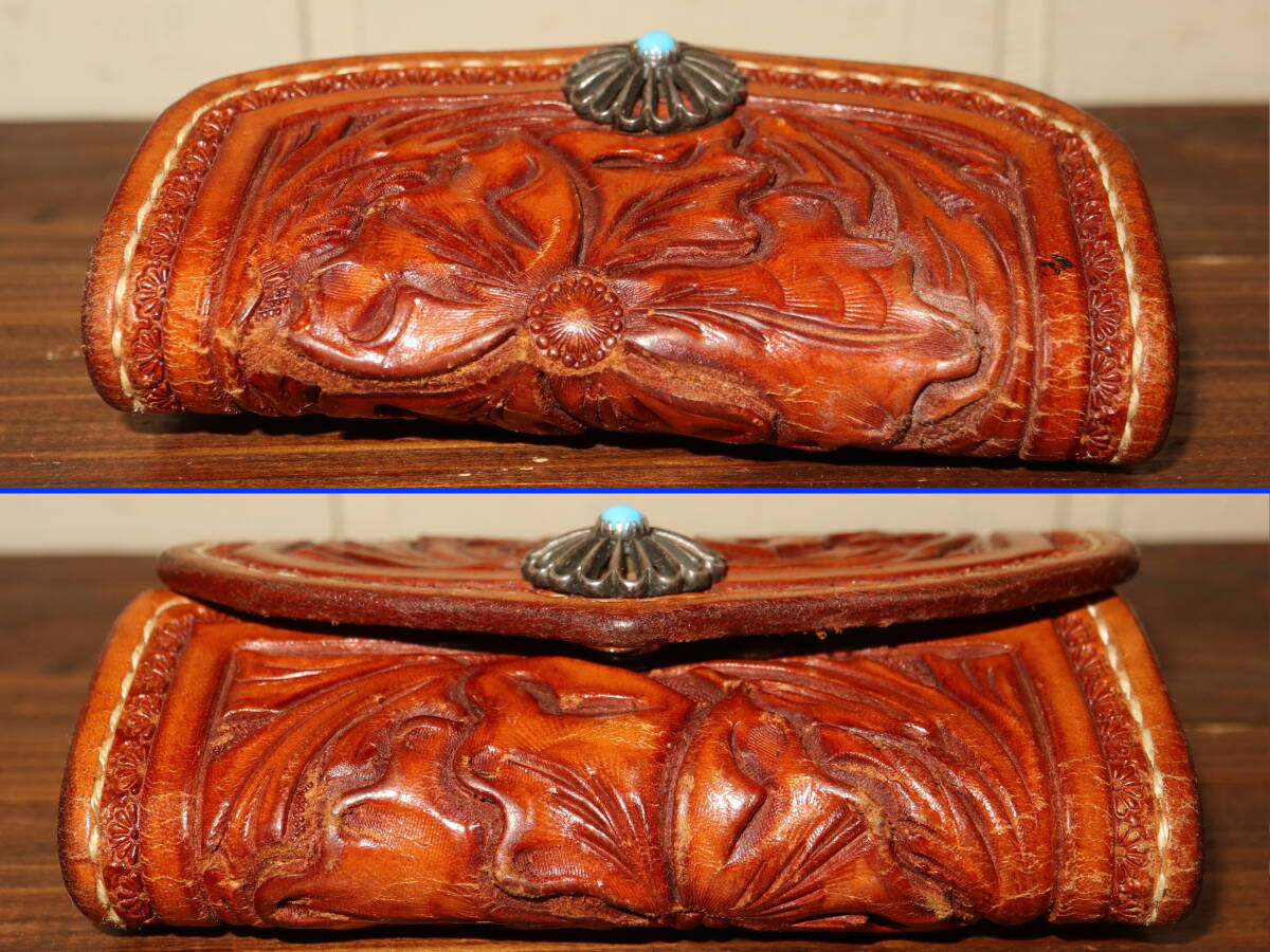 全体的に使用感、曲げ部に表面ひび割れがあります。(革の硬化などはみられず良好です。)