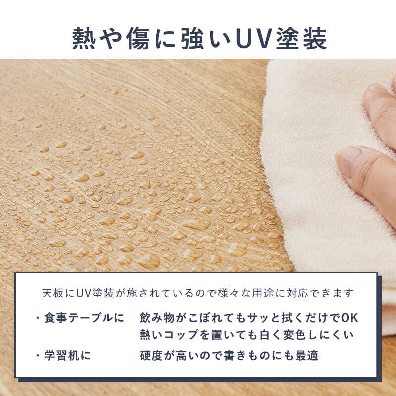 素材:天板:MDFタモ突板(UV塗装)、脚:樺材(ラッカー塗装)