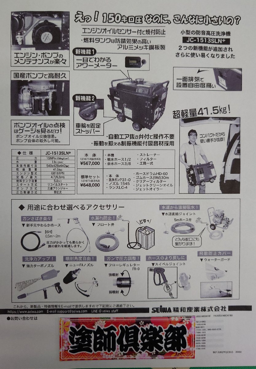 ■塗師■精和 セイワ 超ちょ~小型防音型洗浄機 JC-1513SLN+標準セット 塗師倶楽部