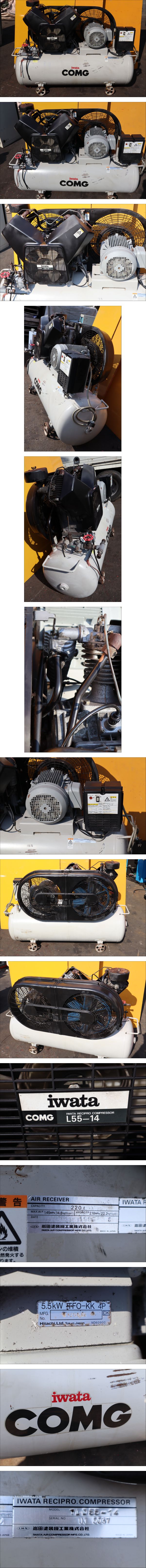 | アーネスト岩田 エアーコンプレッサー L55-14 5.5kW(7.5馬力)三相200V タンク220L 動作確認済 即決価格. | ||
