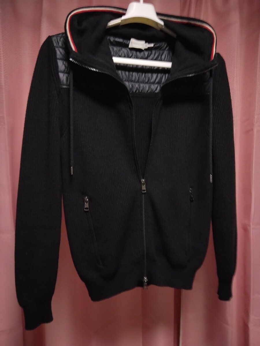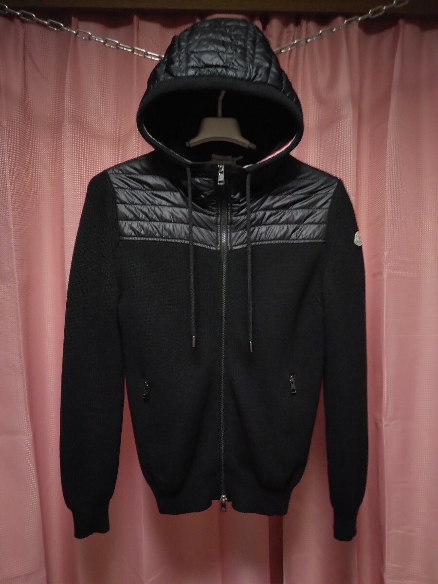 モンクレール ニット/ナイロンカーディガンブルゾン ジャパンタグ付 本物 ★送料込み★ 黒系