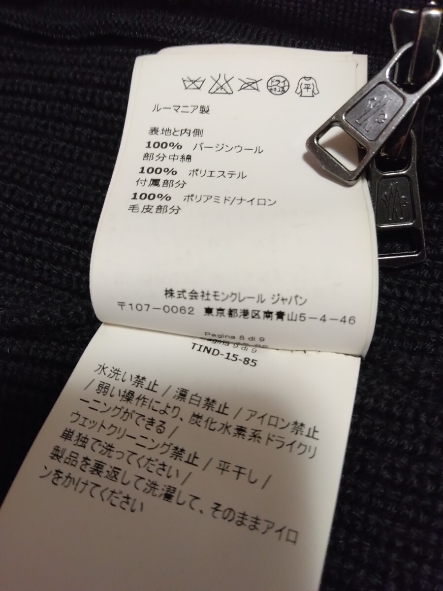 正規店購入本物。モンクレールジャパンタグ付正規店にてメンテナンス可能(有料)