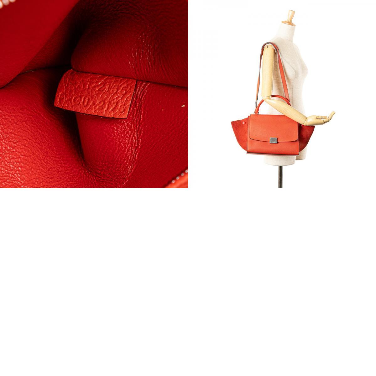 セリーヌ トラペーズ スモール ハンドバッグ ショルダーバッグ 2WAY レッド レザー レディース CELINE 【中古】