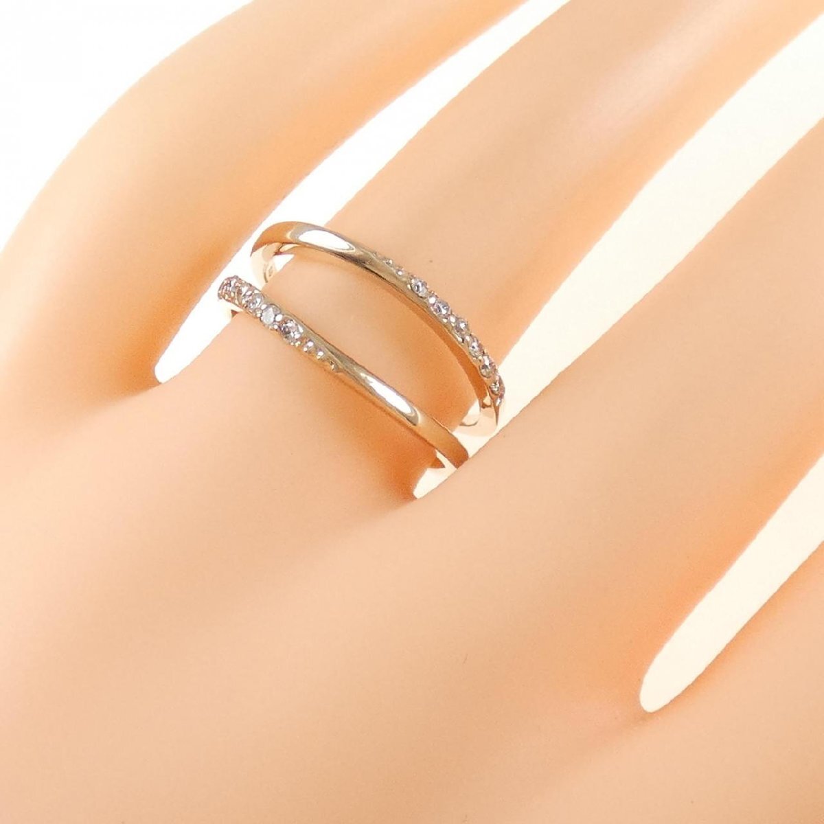 クリアに煌めくダイヤモンドをあしらったピンクゴールドのリング。上品な指元を演出してくれます。